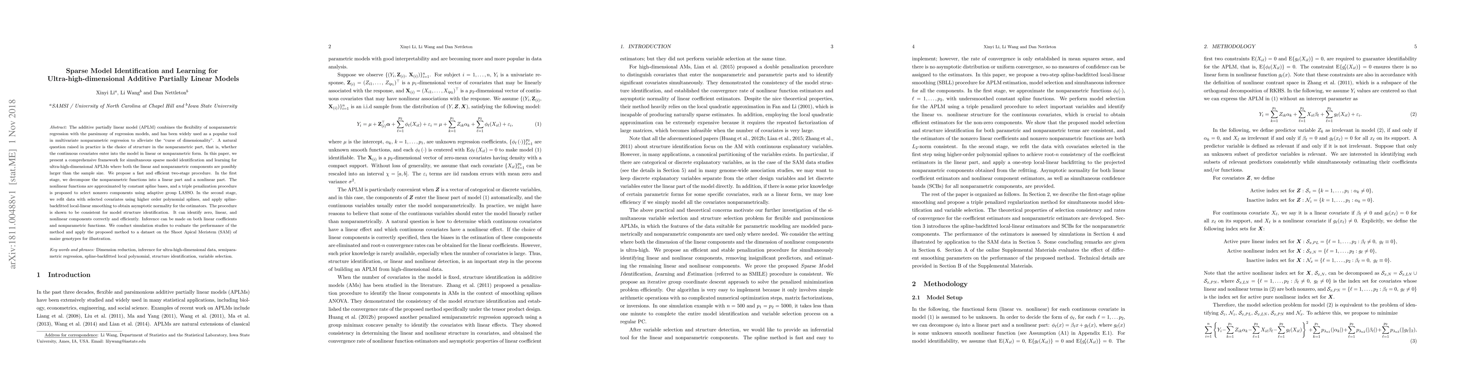 This paper proposes a two-stage procedure for sparse model identification and learning in ultra-high-dimensional additive partially linear models, decomposing nonparametric functions into linear and nonlinear parts using adaptive group LASSO and higher-order polynomial splines, and demonstrating consistent model structure identification and inference. Simulation studies and a real dataset application illustrate the method's effectiveness.
