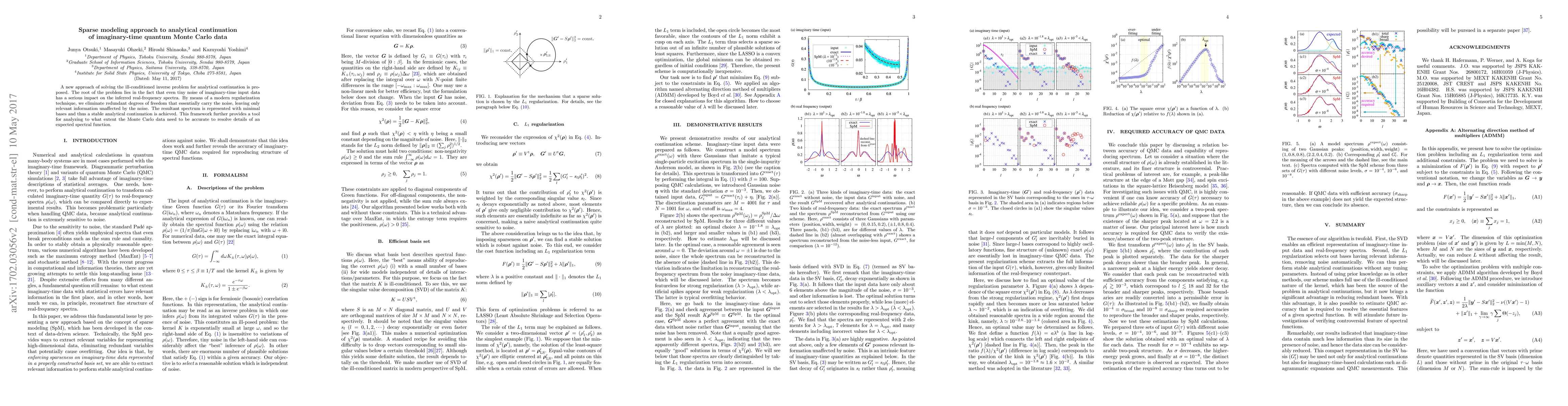 This paper proposes a sparse modeling approach for the analytical continuation of imaginary-time quantum Monte Carlo data, utilizing a regularization technique to filter out noise and stabilize the inferred real-frequency spectra. The method identifies minimal bases to represent the resultant spectrum, offering a tool to assess data accuracy for resolving spectral details.