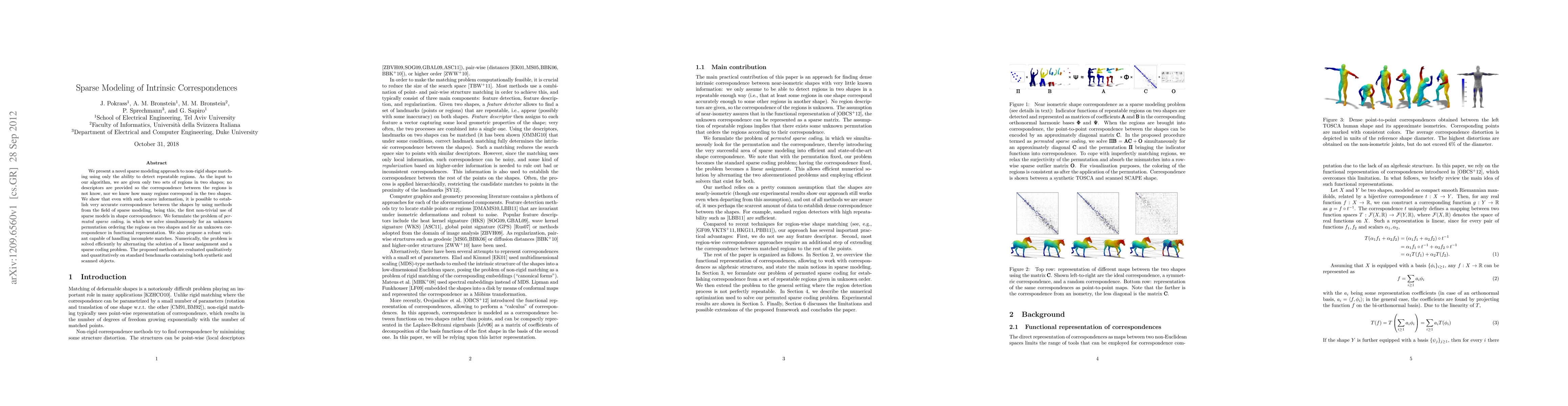 We present a novel sparse modeling approach to non-rigid shape matching using only the ability to detect repeatable regions. As the input to our algorithm, we are given only two sets of regions in two shapes; no descriptors are provided so the correspondence between the regions is not know, nor we know how many regions correspond in the two shapes. We show that even with such scarce information, it is possible to establish very accurate correspondence between the shapes by using methods from the field of sparse modeling, being this, the first non-trivial use of sparse models in shape correspondence. We formulate the problem of permuted sparse coding, in which we solve simultaneously for an unknown permutation ordering the regions on two shapes and for an unknown correspondence in functional representation. We also propose a robust variant capable of handling incomplete matches. Numerically, the problem is solved efficiently by alternating the solution of a linear assignment and a sparse coding problem. The proposed methods are evaluated qualitatively and quantitatively on standard benchmarks containing both synthetic and scanned objects.