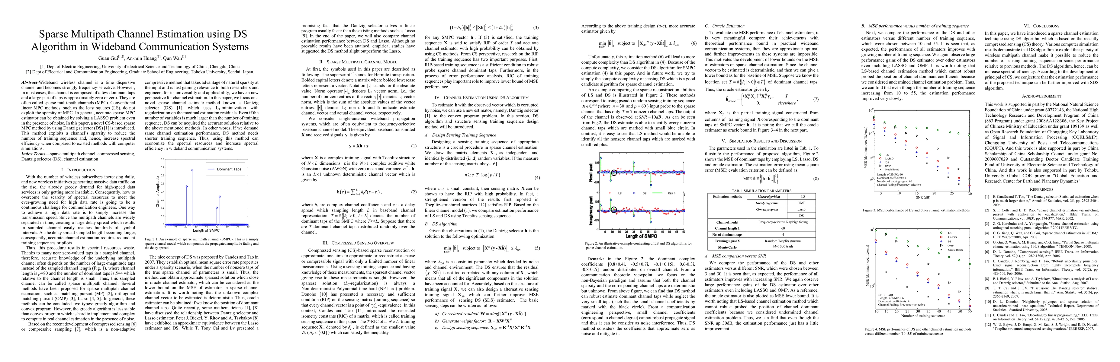 A new method for estimating sparse multipath channels in wideband wireless systems uses Dantzig selector to exploit the channel's sparsity and reduce training sequences, increasing spectral efficiency.
