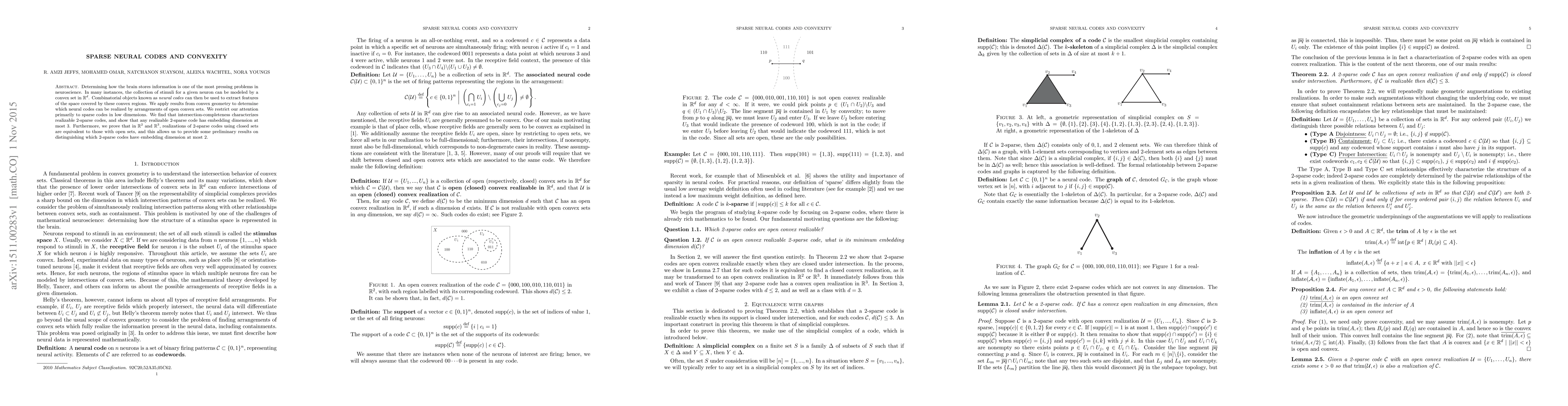 This paper explores how sparse neural codes can be realized using convex sets, focusing on $2$-sparse codes in low dimensions. It reveals that intersection-completeness is key for realizing $2$-sparse codes, and proves that their embedding dimension is at most $3$ in $\mathbb{R}^d$.
