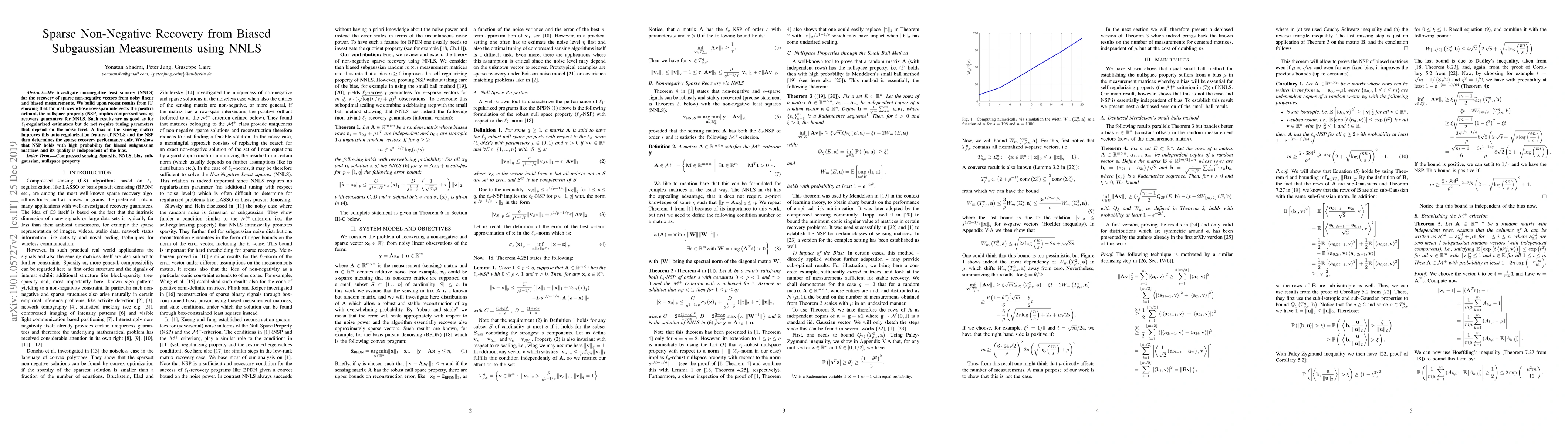 This paper explores the use of non-negative least squares (NNLS) for recovering sparse, non-negative vectors from noisy, biased measurements. It demonstrates that the nullspace property (NSP) ensures recovery performance similar to $\ell_1$-regularized estimators without requiring noise-level dependent tuning parameters, and that NSP holds for biased subgaussian matrices with high probability, regardless of bias.