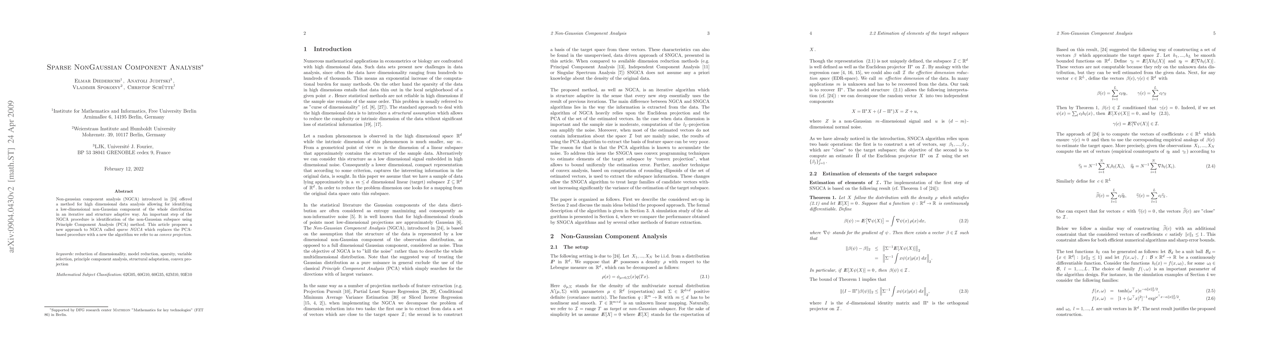 Sparse NonGaussian Component Analysis proposes a new approach to identifying non-Gaussian components in high-dimensional data, replacing PCA with convex projection for improved performance and efficiency.