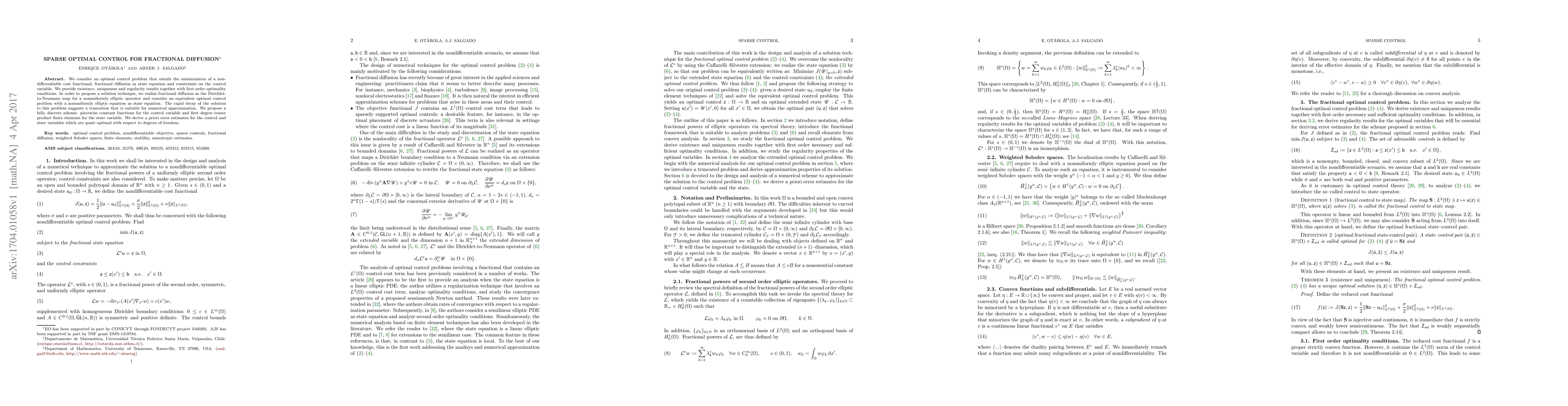 This paper addresses optimal control for fractional diffusion, proving existence, uniqueness, and regularity, and deriving first-order optimality conditions. A numerical scheme using piecewise constant controls and finite elements is proposed, with quasi-optimal a priori error estimates.
