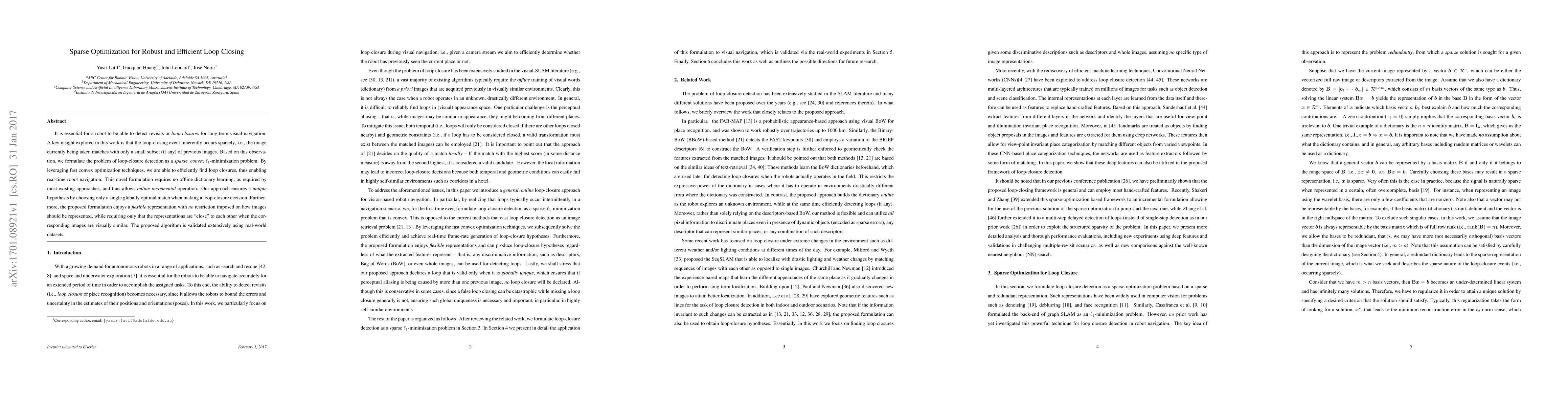 It is essential for a robot to be able to detect revisits or loop closures for long-term visual navigation.A key insight explored in this work is that the loop-closing event inherently occurs sparsely, that is, the image currently being taken matches with only a small subset (if any) of previous images. Based on this observation, we formulate the problem of loop-closure detection as a sparse, convex $\ell_1$-minimization problem. By leveraging fast convex optimization techniques, we are able to efficiently find loop closures, thus enabling real-time robot navigation. This novel formulation requires no offline dictionary learning, as required by most existing approaches, and thus allows online incremental operation. Our approach ensures a unique hypothesis by choosing only a single globally optimal match when making a loop-closure decision. Furthermore, the proposed formulation enjoys a flexible representation with no restriction imposed on how images should be represented, while requiring only that the representations are "close" to each other when the corresponding images are visually similar. The proposed algorithm is validated extensively using real-world datasets.