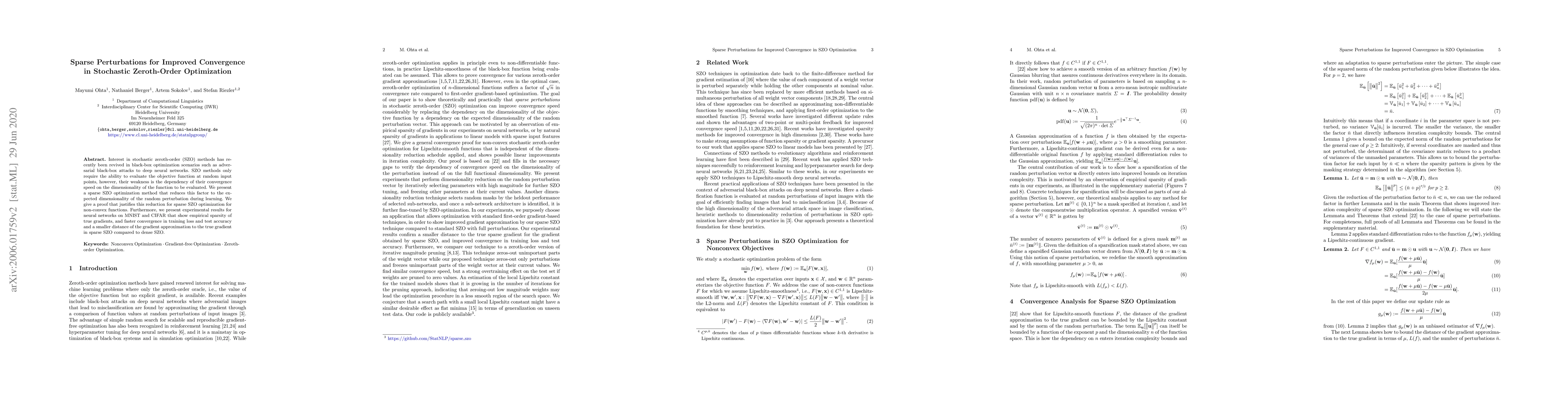 This paper proposes a sparse stochastic zeroth-order optimization method that improves convergence speed by reducing the dimensionality dependency. Theoretical justification and experimental results on neural networks demonstrate faster convergence and more accurate gradient approximations compared to dense stochastic zeroth-order methods.