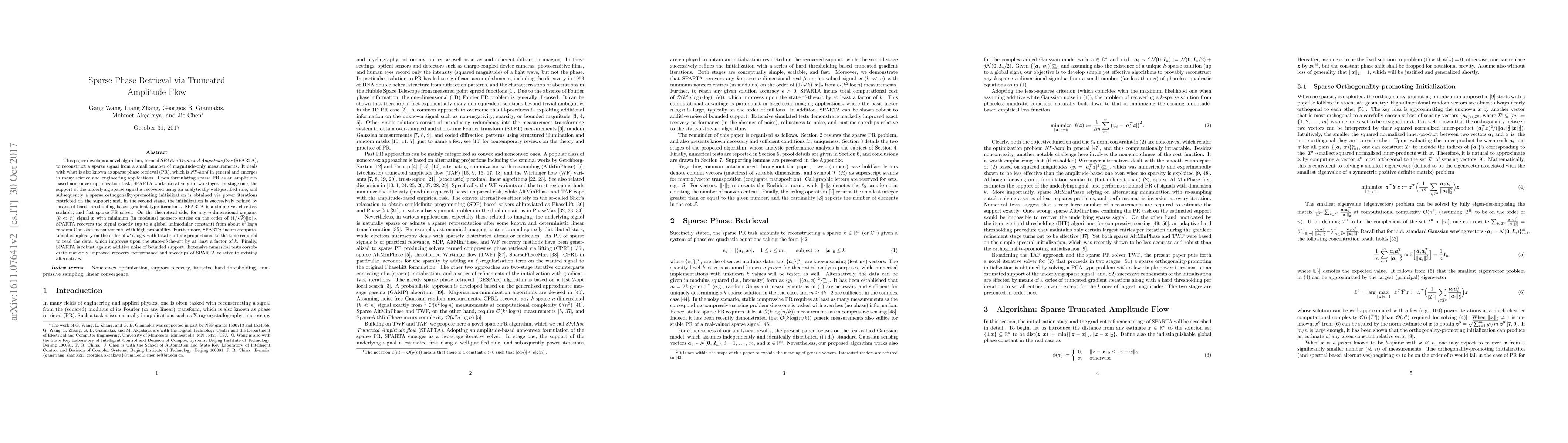 This paper introduces SPARse Truncated Amplitude flow (SPARTA), a novel algorithm for reconstructing sparse signals from limited magnitude-only measurements. SPARTA iteratively refines an initial sparse orthogonality-promoting signal estimate through gradient-type iterations, achieving exact recovery from approximately $k^2\log n$ measurements for $k$-sparse signals, with computational complexity of $k^2n\log n$.