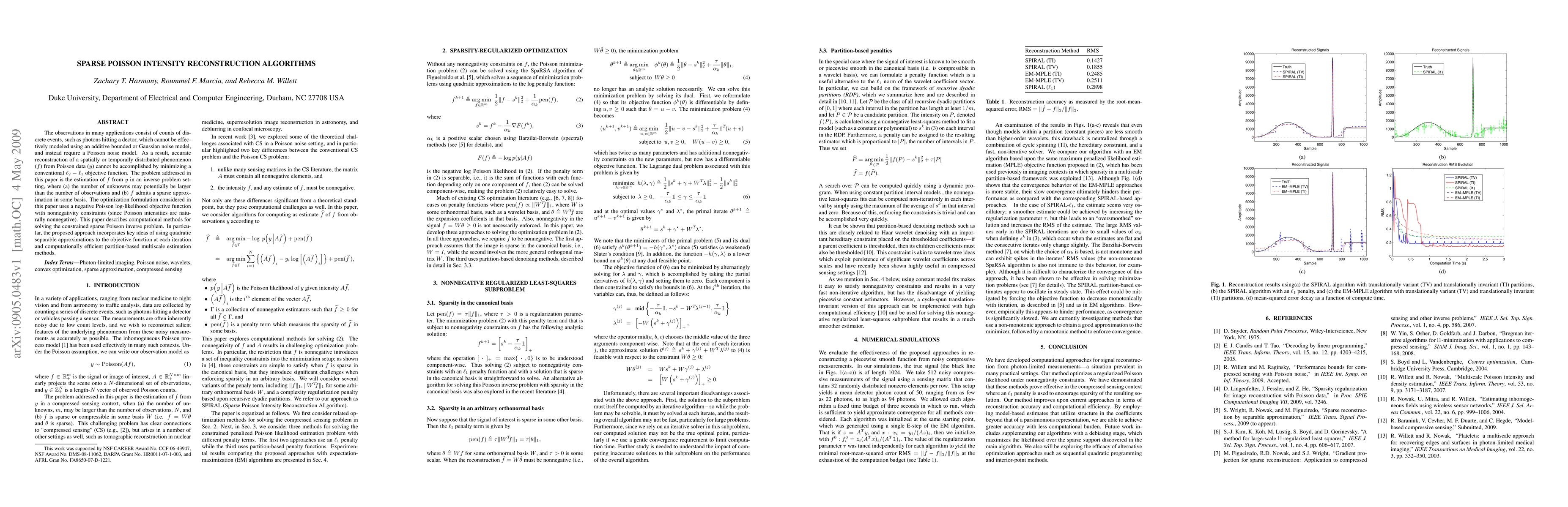 This paper proposes algorithms for reconstructing sparse Poisson intensity distributions from count data using a negative Poisson log-likelihood objective function. It introduces efficient computational methods, including quadratic separable approximations and partition-based multiscale estimation, to solve the inverse problem where the number of unknowns may exceed the number of observations.
