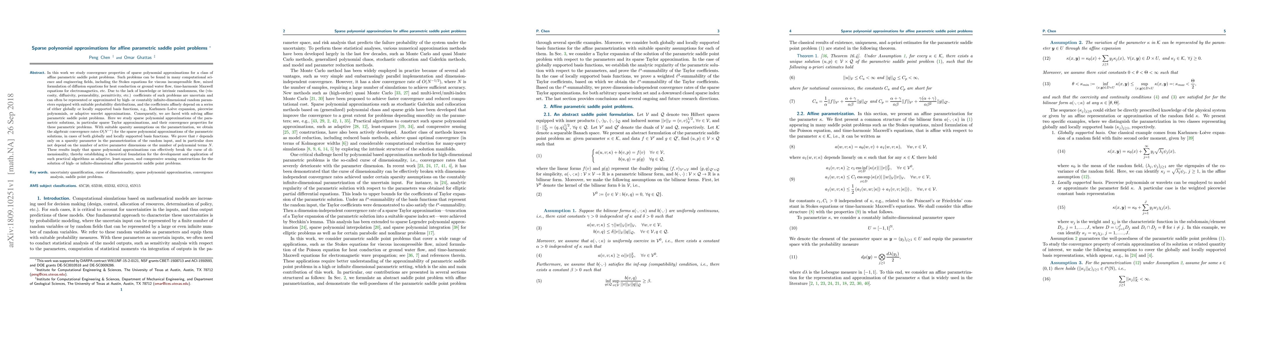 This paper investigates the convergence properties of sparse polynomial approximations for affine parametric saddle point problems, which are prevalent in various computational science and engineering fields. It demonstrates that under suitable sparsity assumptions, these approximations achieve algebraic convergence rates independent of the number of active parameter dimensions, effectively overcoming the curse of dimensionality.