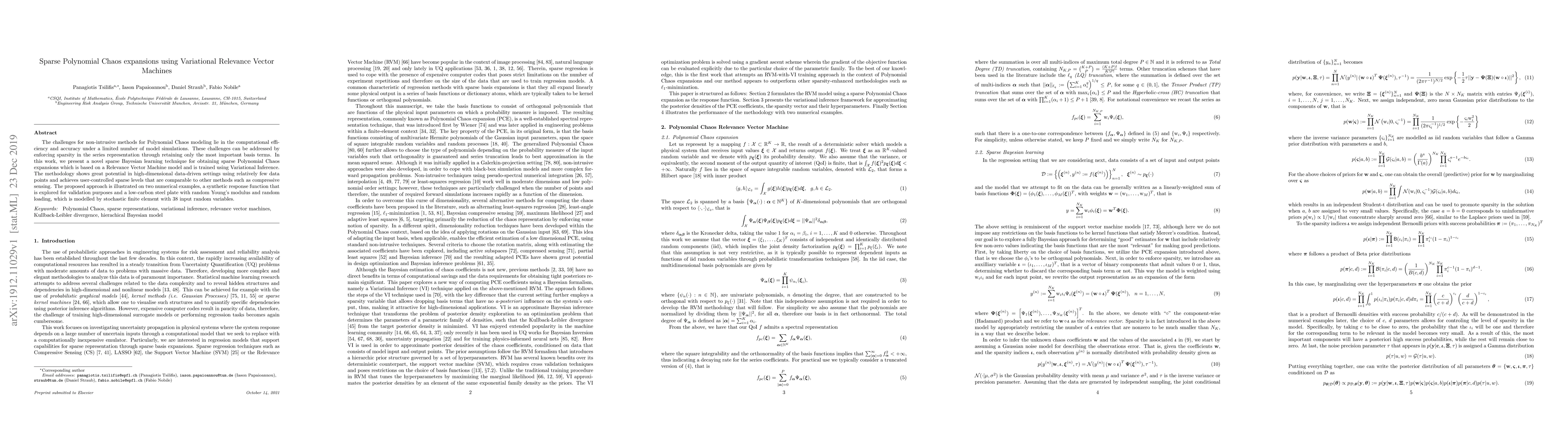 This paper introduces a novel sparse Bayesian learning technique using Variational Relevance Vector Machines for efficient Polynomial Chaos expansions, achieving high accuracy with limited data points. The method demonstrates comparable performance to compressive sensing in high-dimensional data settings.