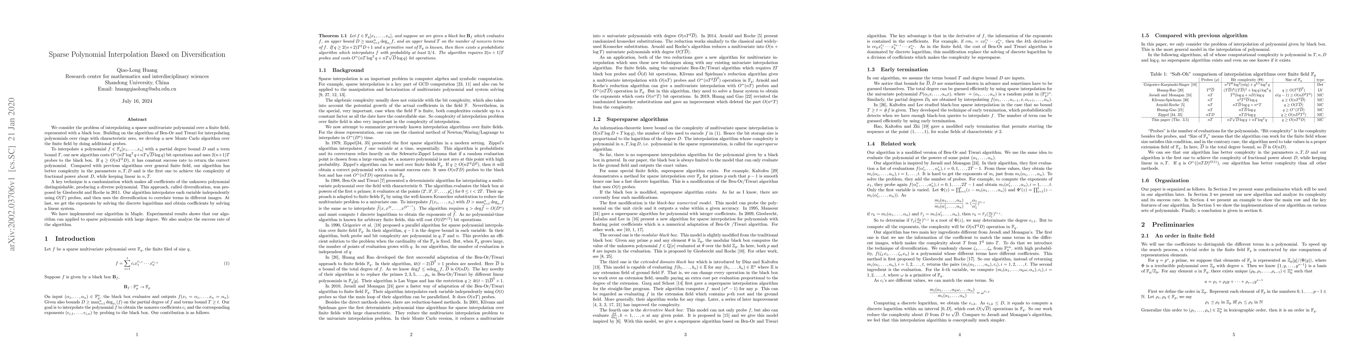 A new algorithm for interpolating sparse multivariate polynomials over finite fields is presented, achieving a complexity of $O^ hicksim(nT heta(D) heta(q))$ bit operations with a constant success rate when $q heta nT^2D$, while improving upon previous algorithms.