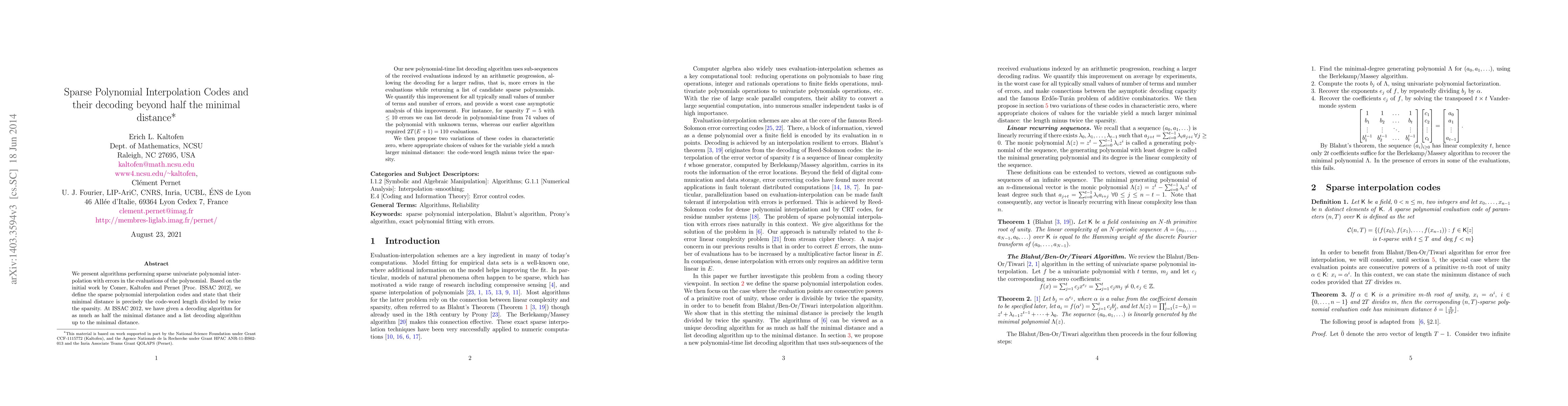 We present algorithms performing sparse univariate polynomial interpolation with errors in the evaluations of the polynomial. Based on the initial work by Comer, Kaltofen and Pernet [Proc. ISSAC 2012], we define the sparse polynomial interpolation codes and state that their minimal distance is precisely the length divided by twice the sparsity. At ISSAC 2012, we have given a decoding algorithm for as much as half the minimal distance and a list decoding algorithm up to the minimal distance. Our new polynomial-time list decoding algorithm uses sub-sequences of the received evaluations indexed by a linear progression, allowing the decoding for a larger radius, that is, more errors in the evaluations while returning a list of candidate sparse polynomials. We quantify this improvement for all typically small values of number of terms and number of errors, and provide a worst case asymptotic analysis of this improvement. For instance, for sparsity T = 5 with up to 10 errors we can list decode in polynomial-time from 74 values of the polynomial with unknown terms, whereas our earlier algorithm required 2T (E + 1) = 110 evaluations. We then propose two variations of these codes in characteristic zero, where appropriate choices of values for the variable yield a much larger minimal distance: the length minus twice the sparsity.