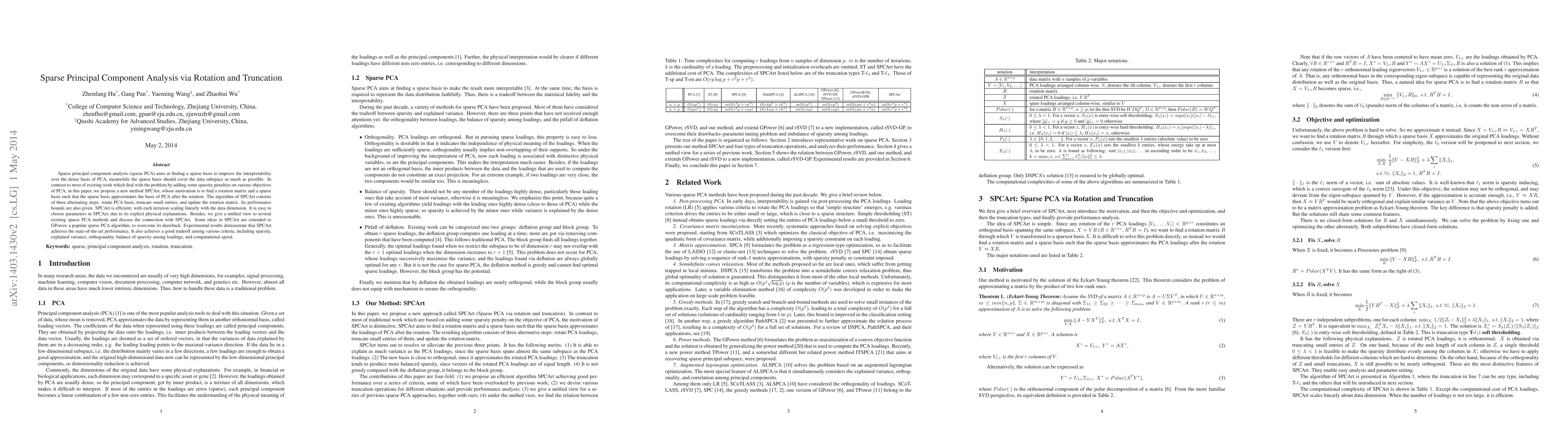 This paper introduces SPCArt, a novel sparse PCA method that finds a rotation matrix and sparse basis to approximate PCA's basis. SPCArt alternates between rotating PCA basis, truncating small entries, and updating the rotation matrix, achieving state-of-the-art performance while balancing sparsity, explained variance, and computational speed.