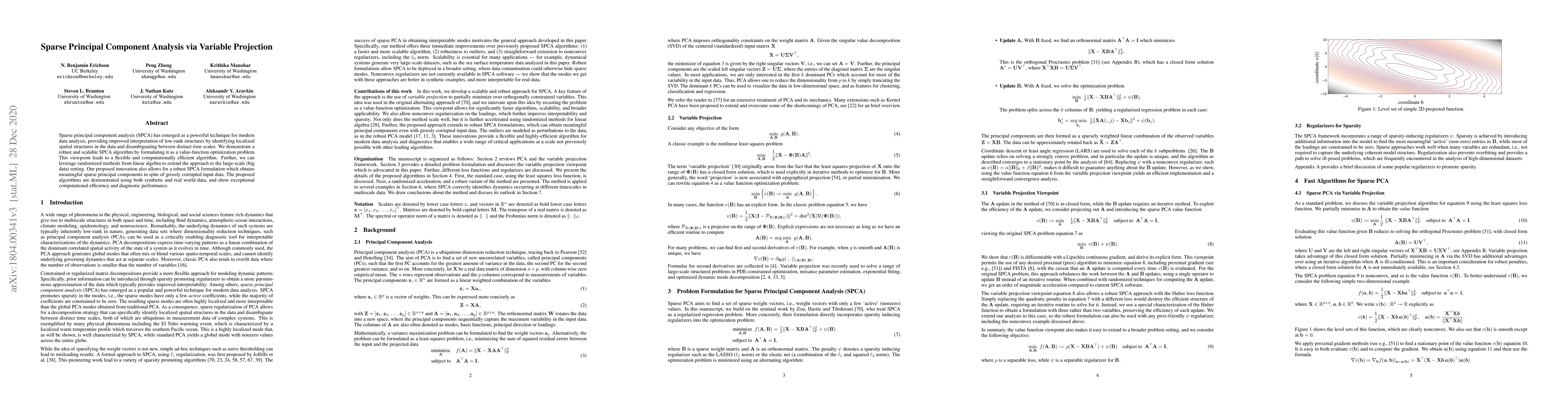 This paper introduces a robust and scalable sparse principal component analysis (SPCA) algorithm framed as a value-function optimization problem, leveraging randomized linear algebra methods for efficiency in big data settings. The proposed method effectively identifies localized structures and performs well even with corrupted data, as demonstrated by computational efficiency and performance on synthetic and real-world datasets.