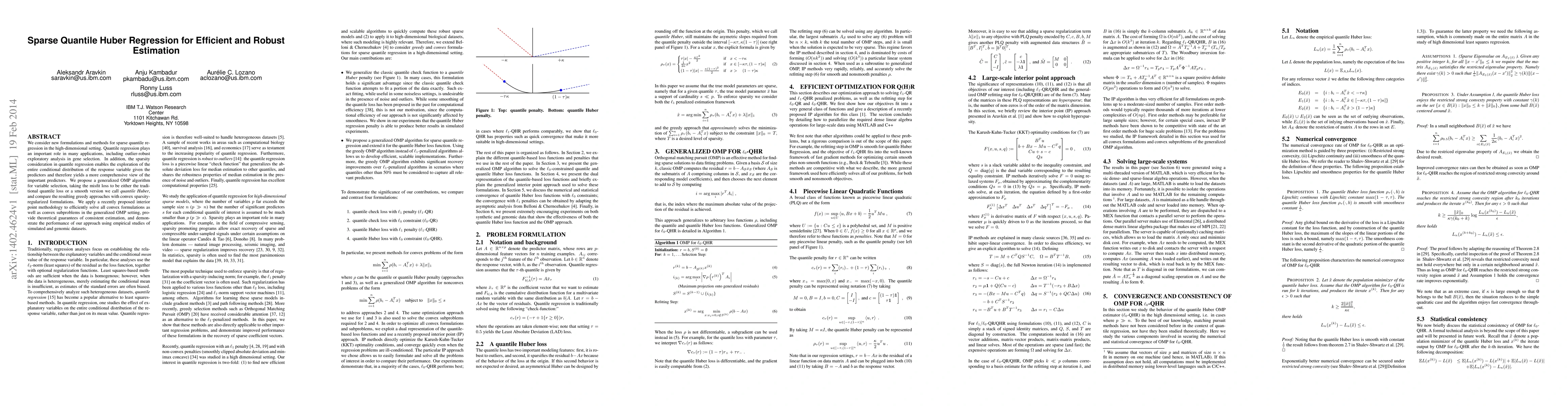 This paper proposes a sparse quantile regression method using a generalized OMP algorithm for variable selection, employing either traditional quantile loss or a smooth quantile Huber loss. It applies interior point methodology to solve convex formulations and demonstrates robust performance through theoretical guarantees and empirical studies on simulated and genomic datasets.