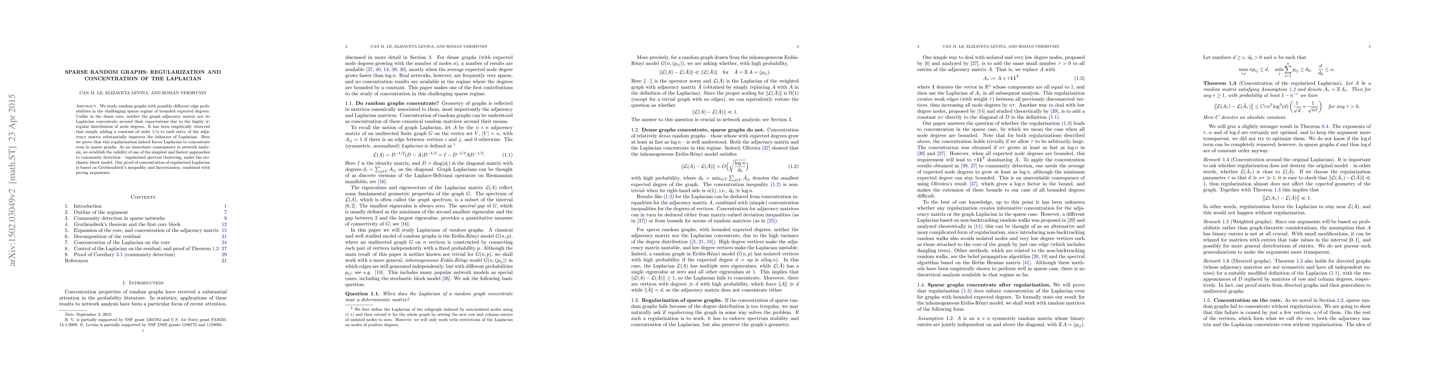 This paper investigates sparse random graphs with bounded expected degrees and demonstrates that regularization of the adjacency matrix by adding a small constant improves the concentration of the Laplacian. The authors prove that this regularization leads to effective community detection via regularized spectral clustering under the stochastic block model.