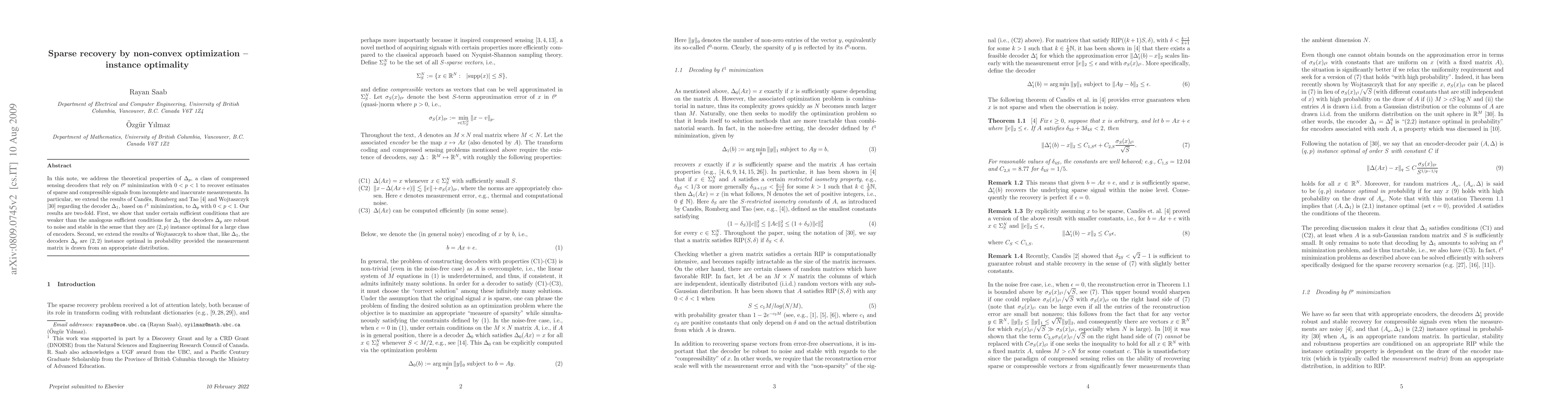 Researchers extend the results of previous work on compressed sensing decoders to a class of non-convex optimization methods using $ ho^p$ minimization for $0 < p < 1$. They show that these decoders are robust to noise and stable under certain conditions, and are instance optimal in probability.