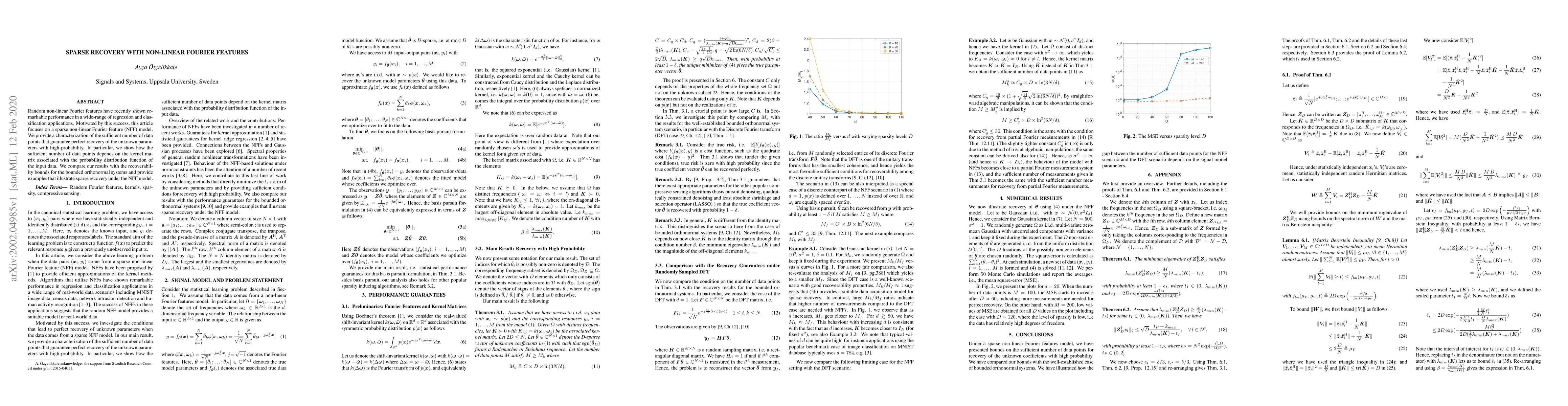 Researchers develop a new model for sparse non-linear Fourier features to guarantee perfect recovery of unknown parameters with high probability. They find that the sufficient number of data points depends on the kernel matrix associated with the input data distribution.