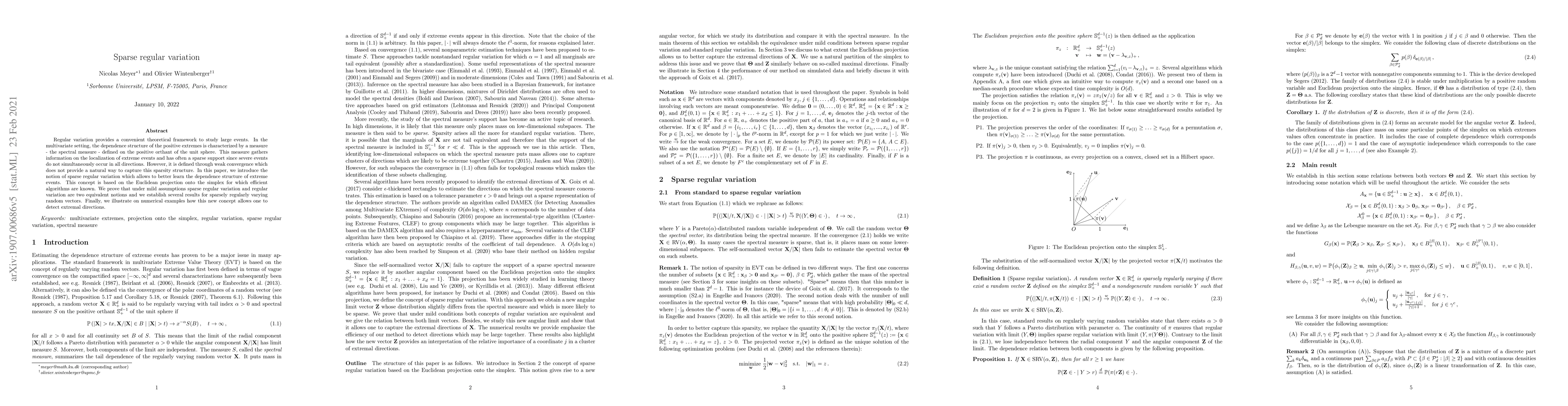 The paper introduces sparse regular variation, a concept that improves the study of tail dependence in regular variation using the Euclidean projection onto the simplex, which is computationally efficient and avoids weak convergence issues.