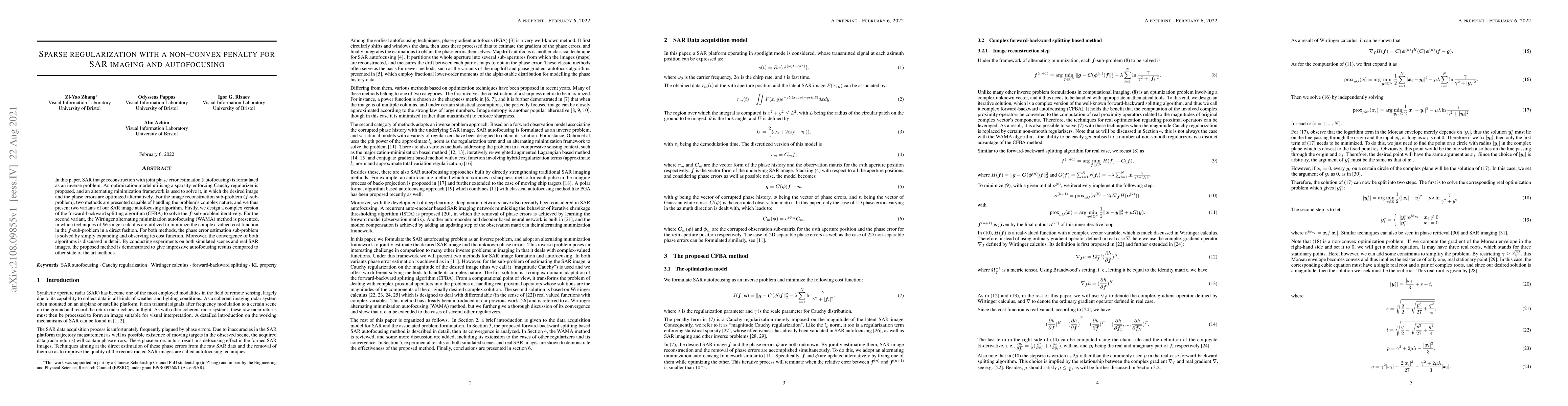 This paper proposes a sparse regularization method with a non-convex penalty for SAR image reconstruction and autofocusing using an alternating minimization framework. It introduces two variants of the SAR image autofocusing algorithm: the complex forward-backward splitting algorithm (CFBA) and the Wirtinger alternating minimization autofocusing (WAMA) method, both demonstrating superior performance in experiments compared to other methods.