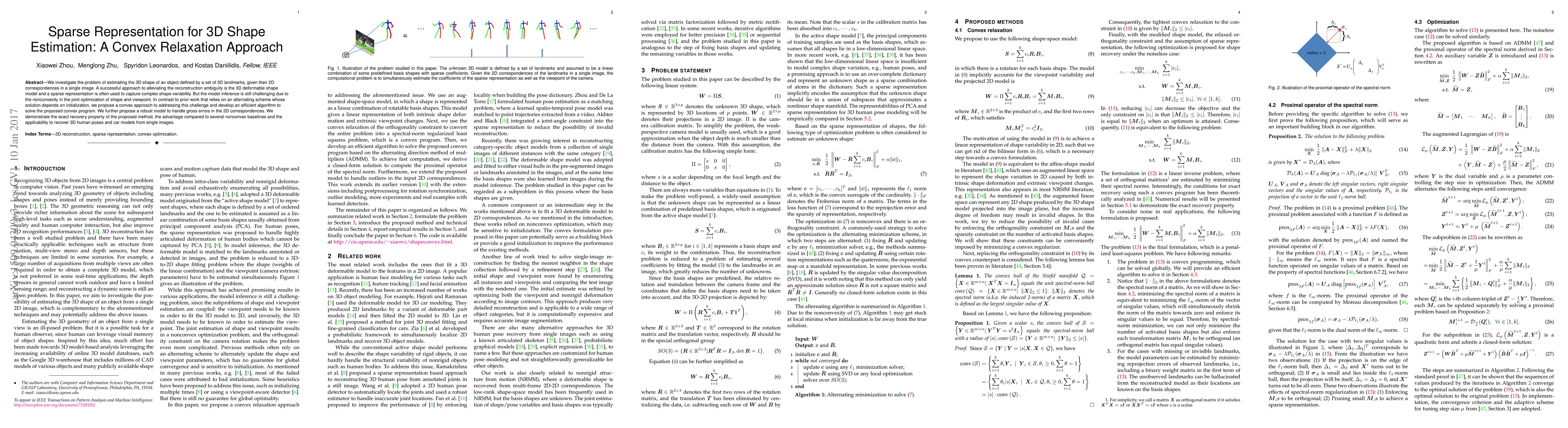 This paper proposes a convex relaxation approach for estimating 3D shapes from 2D correspondences, addressing the nonconvexity challenge in joint shape and viewpoint estimation. The method demonstrates robust recovery and outperforms nonconvex baselines, applicable to human pose and car model reconstruction from single images.