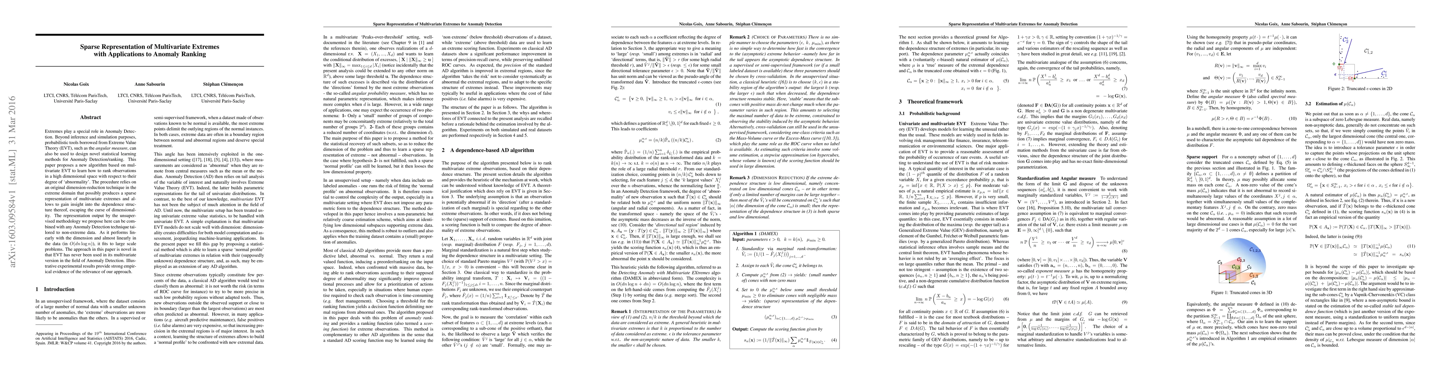 The paper presents an unsupervised dimension-reduction technique in the extreme domain for sparse representation of multivariate extremes, enabling anomaly detection and ranking in high-dimensional spaces.