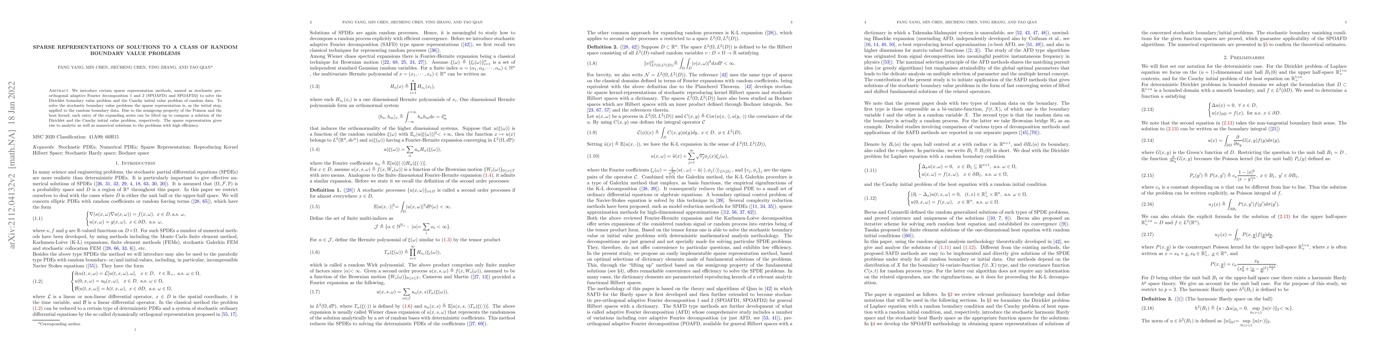 This paper proposes two sparse representation methods, SPOAFD1 and SPOAFD2, to efficiently solve stochastic boundary value problems for random data. The methods leverage the semigroup property of Poisson and heat kernels to construct solutions from sparse representations of the random boundary data.