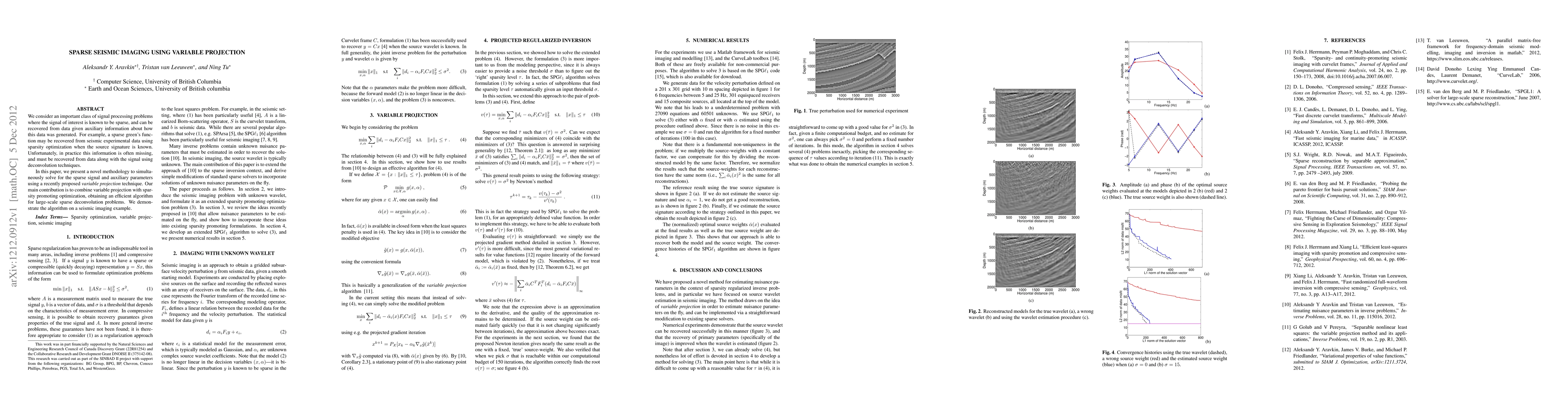 This paper introduces a novel methodology combining variable projection with sparsity optimization to simultaneously recover sparse signals and auxiliary parameters in large-scale deconvolution problems, demonstrated through a seismic imaging example. The approach efficiently handles scenarios where source signature information is missing.