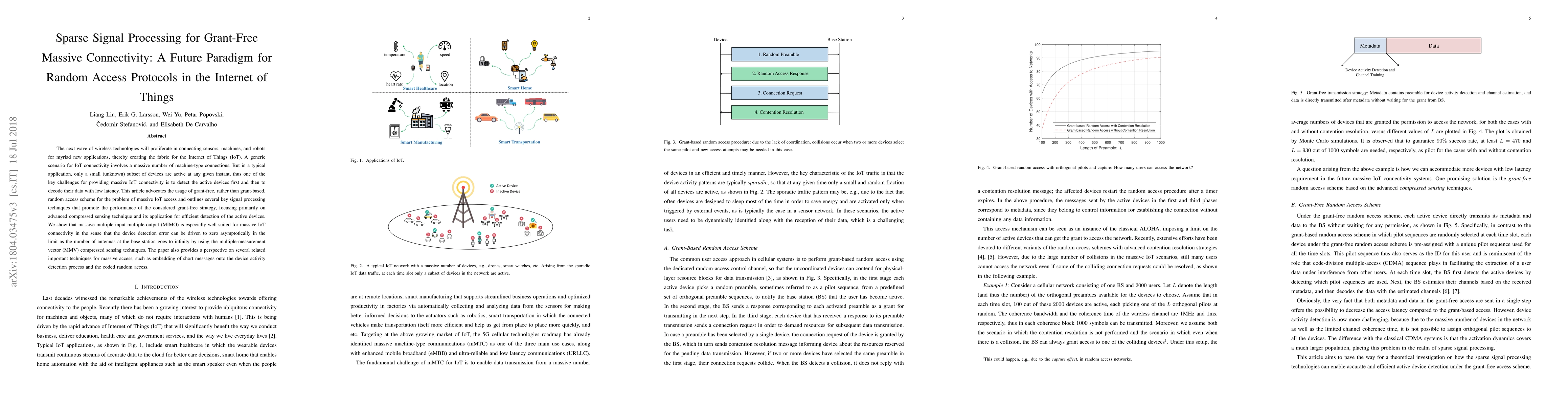 This paper proposes a new approach to connect a large number of IoT devices using sparse signal processing techniques, enabling efficient detection of active devices with low latency. By leveraging advanced compressed sensing methods and massive MIMO technology, the authors aim to create a future paradigm for grant-free massive connectivity in the Internet of Things.