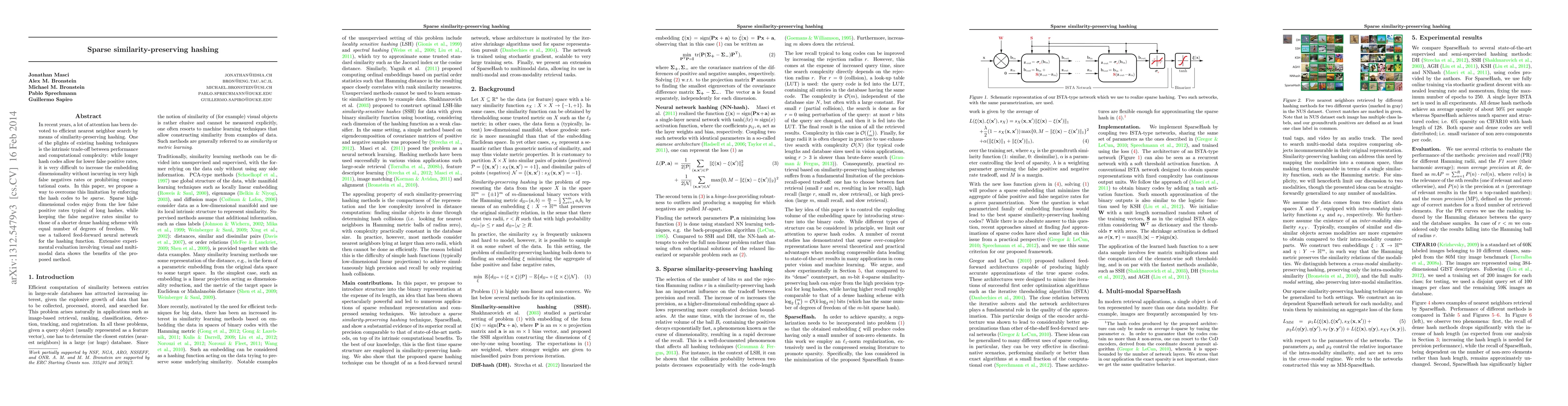 This paper proposes a sparse similarity-preserving hashing method to enhance nearest neighbor search efficiency. By enforcing sparse hash codes, it achieves low false positive rates similar to long hash codes while maintaining manageable computational costs and false negative rates akin to shorter dense hashing.