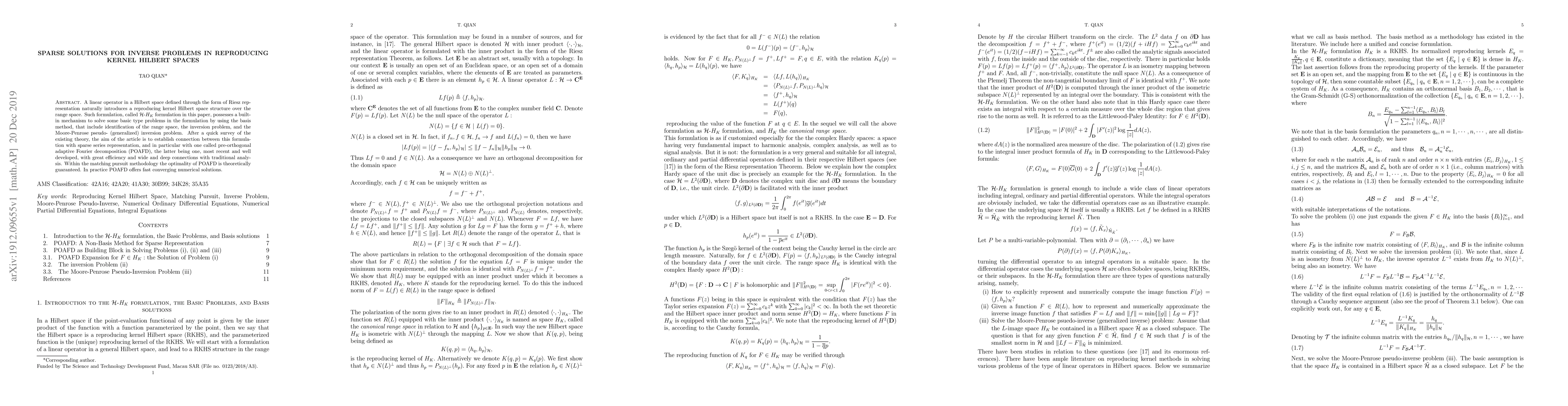 This paper establishes a connection between sparse series representation and pre-orthogonal adaptive Fourier decomposition (POAFD) in the context of Hilbert spaces, offering efficient numerical solutions for inverse problems.