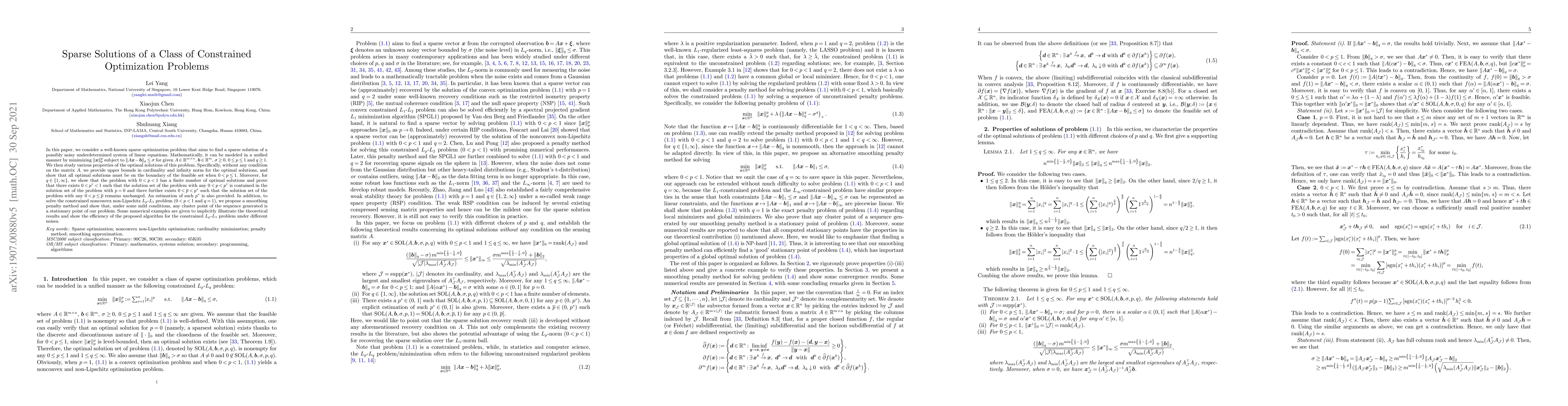 This paper investigates a class of constrained optimization problems to find sparse solutions for underdetermined systems, providing bounds on optimal solutions and conditions for finite solution sets.