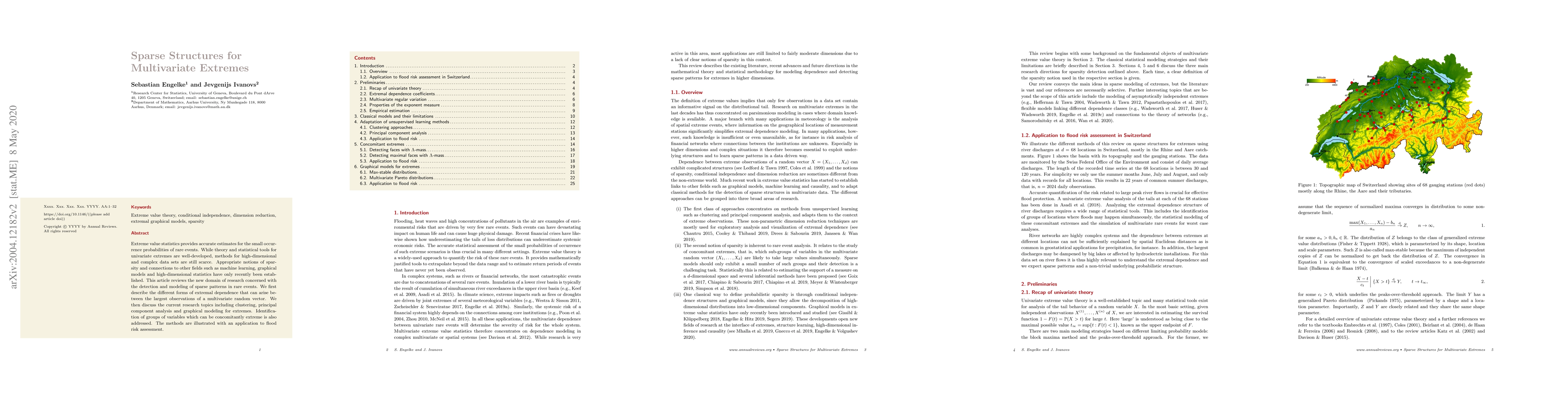 This paper reviews the emerging field of sparse structures in multivariate extreme value statistics, focusing on detecting and modeling rare events in high-dimensional data. It explores extremal dependence, clustering, PCA, and graphical modeling for extremes, and demonstrates applications through flood risk assessment.