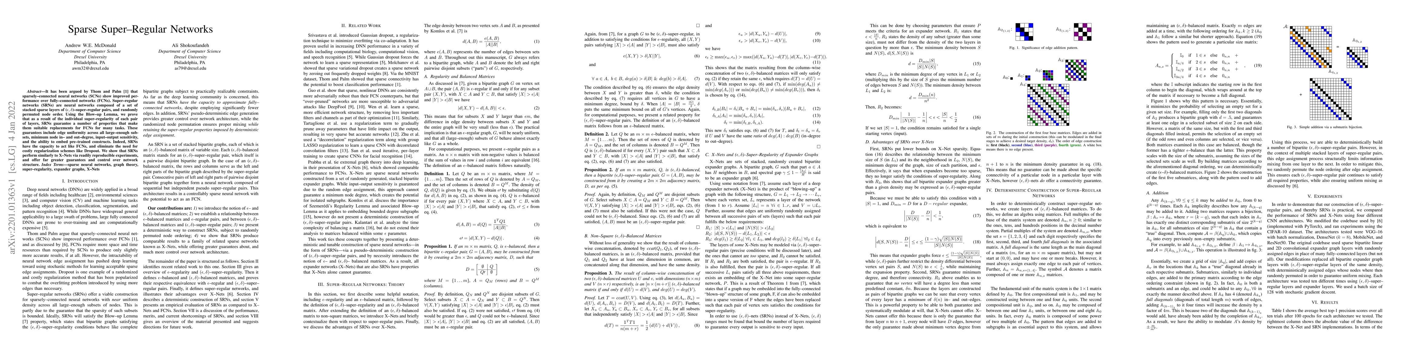 It has been argued by Thom and Palm that sparsely-connected neural networks (SCNs) show improved performance over fully-connected networks (FCNs). Super-regular networks (SRNs) are neural networks composed of a set of stacked sparse layers of (epsilon, delta)-super-regular pairs, and randomly permuted node order. Using the Blow-up Lemma, we prove that as a result of the individual super-regularity of each pair of layers, SRNs guarantee a number of properties that make them suitable replacements for FCNs for many tasks. These guarantees include edge uniformity across all large-enough subsets, minimum node in- and out-degree, input-output sensitivity, and the ability to embed pre-trained constructs. Indeed, SRNs have the capacity to act like FCNs, and eliminate the need for costly regularization schemes like Dropout. We show that SRNs perform similarly to X-Nets via readily reproducible experiments, and offer far greater guarantees and control over network structure.