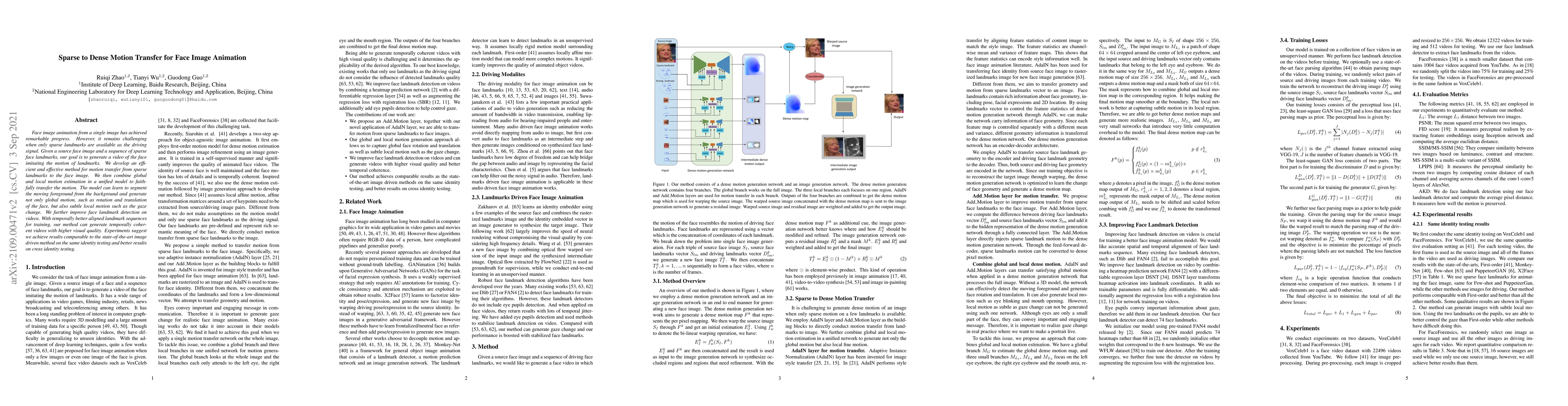 This paper proposes a method for animating face images using sparse landmarks as motion drivers, combining global and local motion estimation to generate coherent videos with both global and subtle local motions. The approach improves face landmark detection, leading to higher visual quality and better results in cross-identity testing compared to the state-of-the-art.