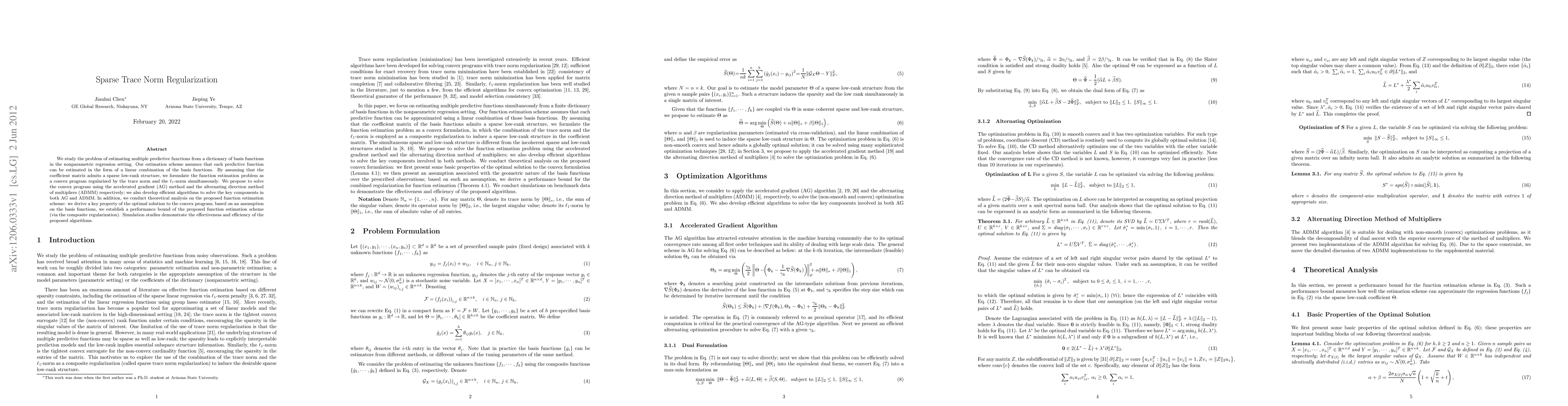 This paper proposes a method for estimating multiple predictive functions using sparse trace norm regularization in nonparametric regression. The authors develop efficient algorithms based on accelerated gradient and ADMM to solve the convex program and conduct theoretical analysis to establish performance bounds, demonstrating the effectiveness through simulations.