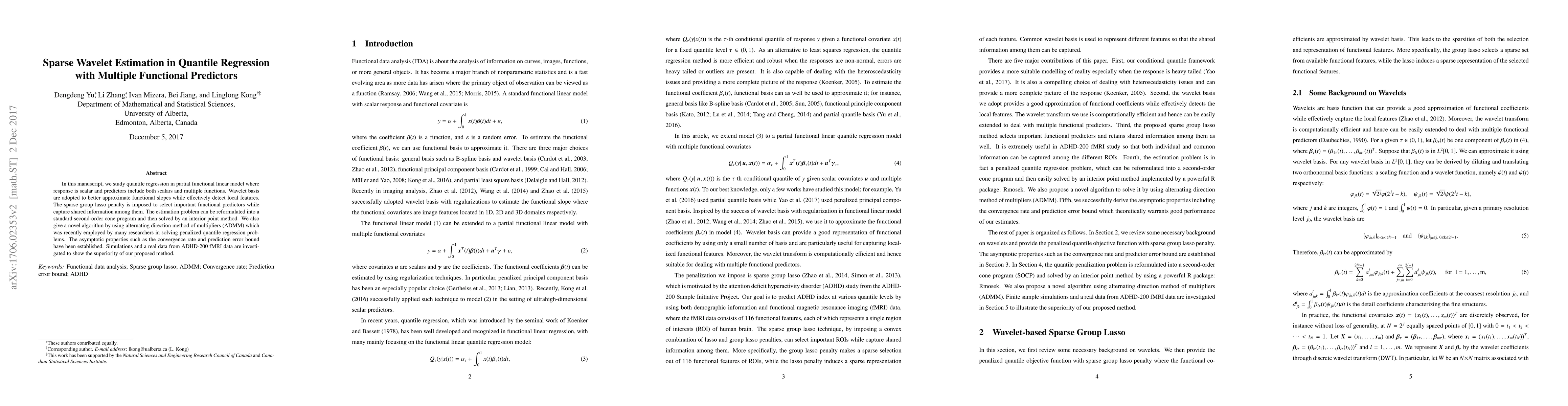 This paper proposes a sparse wavelet estimation method for quantile regression in partial functional linear models with both scalar and multiple functional predictors. It employs wavelet basis and a sparse group lasso penalty to effectively detect local features and select important predictors, reformulating the problem into a second-order cone program solvable by an interior point method. The authors also introduce an ADMM algorithm and demonstrate its superiority through simulations and an ADHD-200 fMRI dataset.