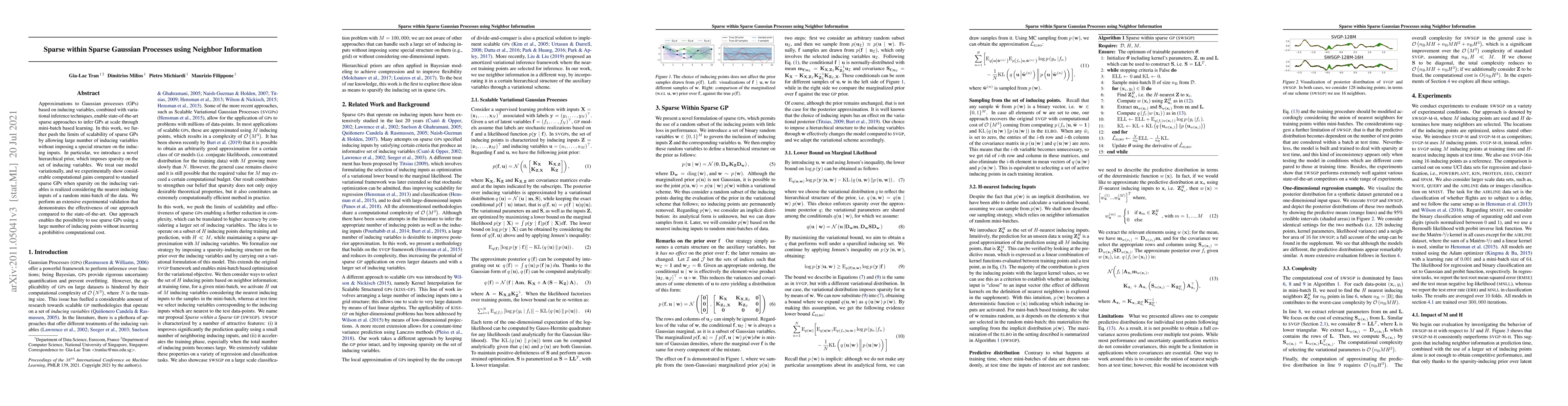 This paper proposes a novel hierarchical prior to impose sparsity on inducing variables in sparse Gaussian processes, enabling efficient inference with large datasets. The approach leverages variational inference and computational gains by considering the nearest inducing inputs, demonstrating significant performance improvements over standard sparse GPs.