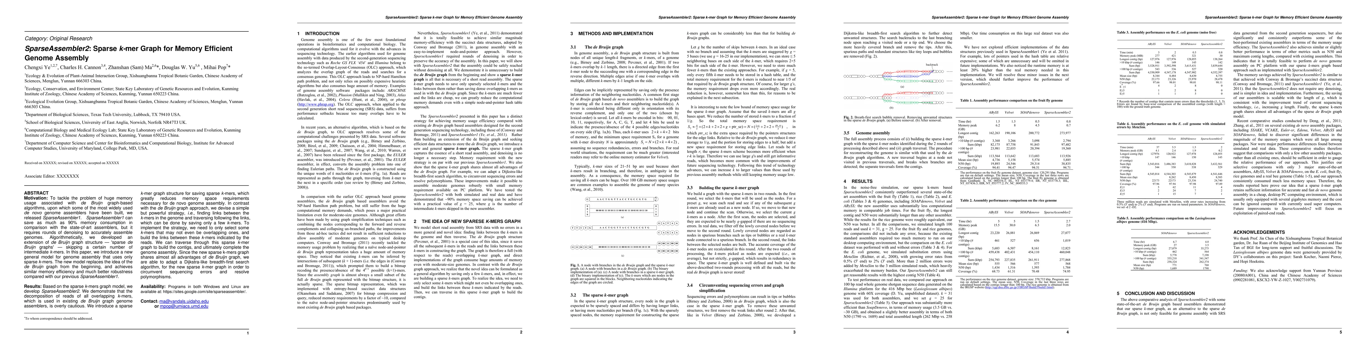 SparseAssembler2 introduces a sparse k-mer graph model for memory-efficient genome assembly, achieving similar memory efficiency to previous methods while requiring fewer rounds of denoising. This new approach reduces memory usage by only selecting and linking non-overlapping k-mers, enabling robust genome assembly with a Dijkstra-like algorithm.