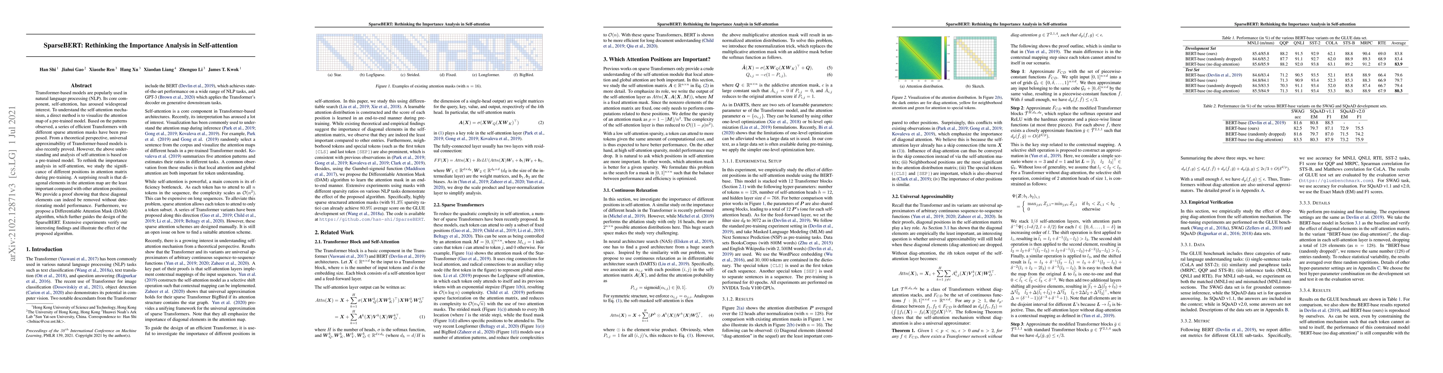 This paper investigates the importance of different positions in the self-attention mechanism during pre-training, revealing that diagonal elements are least important. The authors propose a Differentiable Attention Mask algorithm to guide the development of SparseBERT, demonstrating that these elements can be removed without affecting model performance.