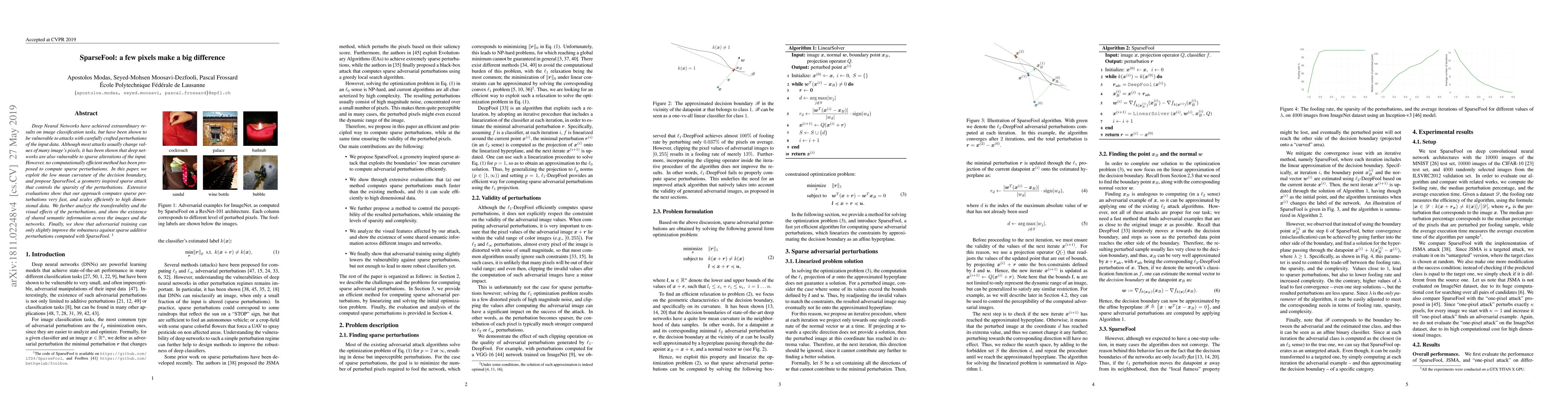 Researchers developed SparseFool, a fast and efficient method to compute sparse perturbations that can fool deep neural networks, finding that even a few well-placed pixels can significantly impact the network's accuracy.