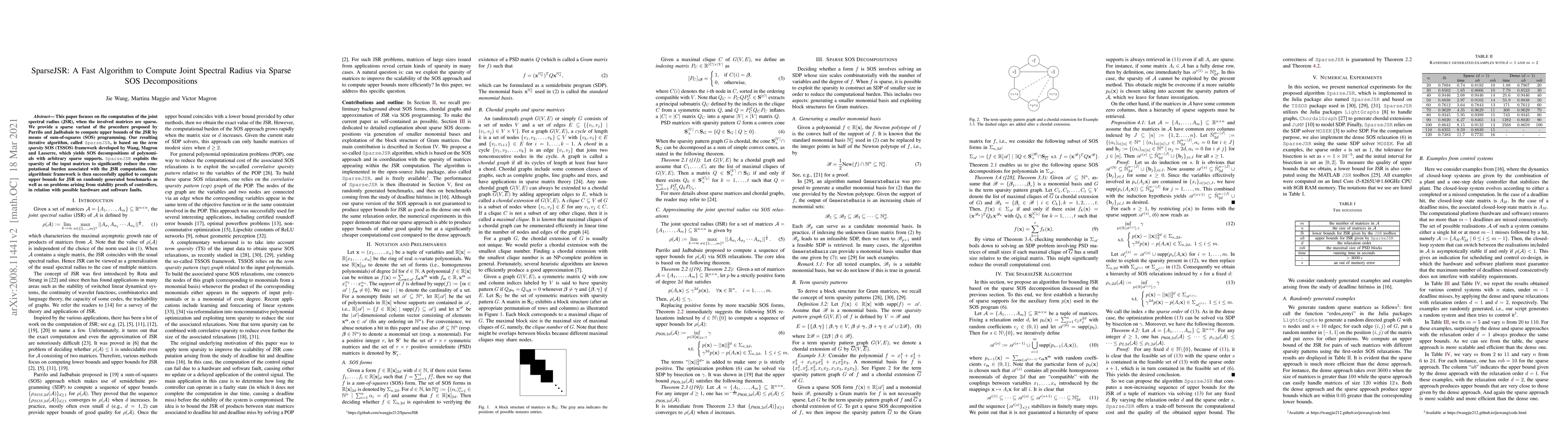 This paper introduces SparseJSR, an efficient algorithm for computing joint spectral radii of sparse matrices using sparse SOS decompositions. The method leverages the TSSOS framework to exploit matrix sparsity, significantly reducing computational costs compared to existing methods.