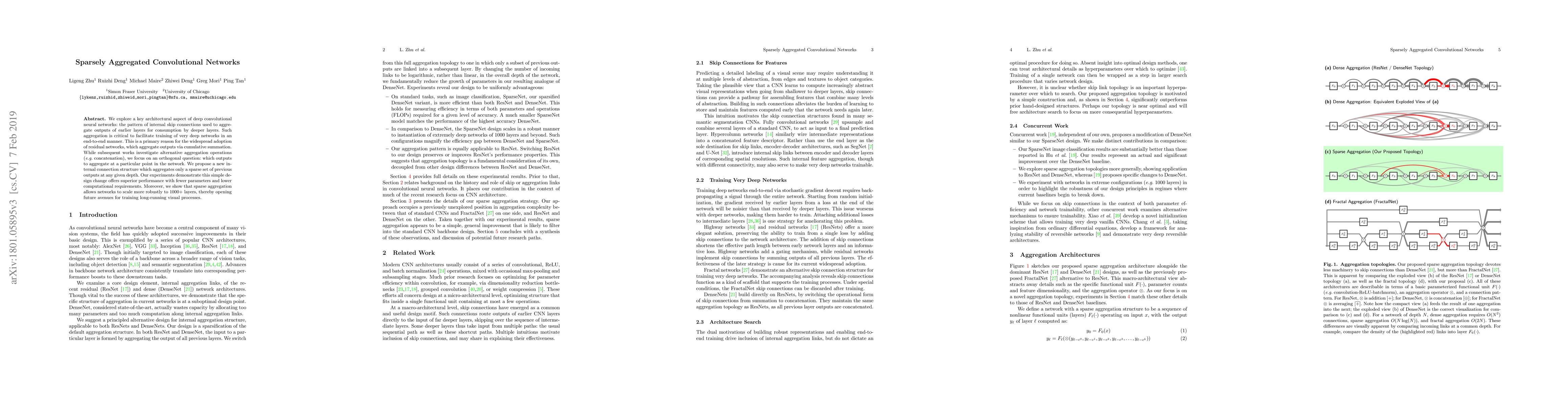 We explore a key architectural aspect of deep convolutional neural networks: the pattern of internal skip connections used to aggregate outputs of earlier layers for consumption by deeper layers. Such aggregation is critical to facilitate training of very deep networks in an end-to-end manner. This is a primary reason for the widespread adoption of residual networks, which aggregate outputs via cumulative summation. While subsequent works investigate alternative aggregation operations (e.g. concatenation), we focus on an orthogonal question: which outputs to aggregate at a particular point in the network. We propose a new internal connection structure which aggregates only a sparse set of previous outputs at any given depth. Our experiments demonstrate this simple design change offers superior performance with fewer parameters and lower computational requirements. Moreover, we show that sparse aggregation allows networks to scale more robustly to 1000+ layers, thereby opening future avenues for training long-running visual processes.