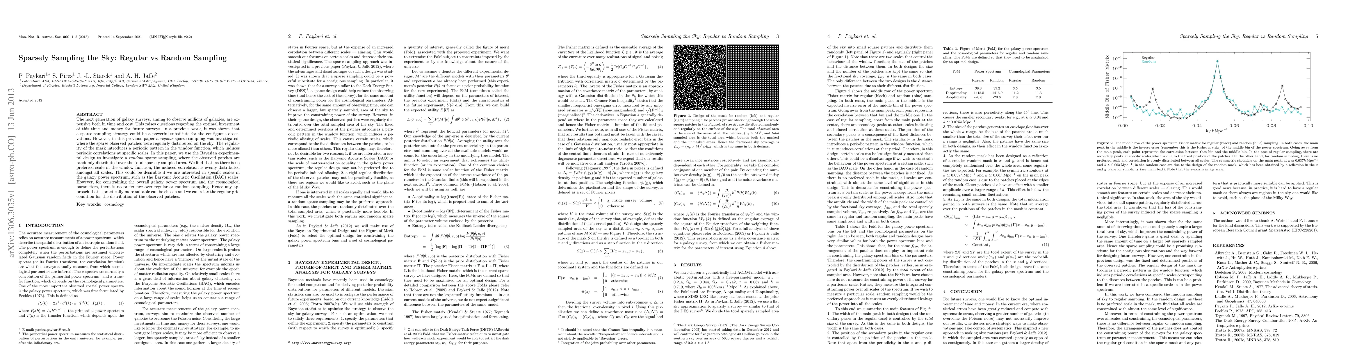 The next generation of galaxy surveys, aiming to observe millions of galaxies, are expensive both in time and cost. This raises questions regarding the optimal investment of this time and money for future surveys. In a previous work, it was shown that a sparse sampling strategy could be a powerful substitute for the contiguous observations. However, in this previous paper a regular sparse sampling was investigated, where the sparse observed patches were regularly distributed on the sky. The regularity of the mask introduces a periodic pattern in the window function, which induces periodic correlations at specific scales. In this paper, we use the Bayesian experimental design to investigate a random sparse sampling, where the observed patches are randomly distributed over the total sparsely sampled area. We find that, as there is no preferred scale in the window function, the induced correlation is evenly distributed amongst all scales. This could be desirable if we are interested in specific scales in the galaxy power spectrum, such as the Baryonic Acoustic Oscillation (BAO) scales. However, for constraining the overall galaxy power spectrum and the cosmological parameters, there is no preference over regular or random sampling. Hence any approach that is practically more suitable can be chosen and we can relax the regular-grid condition for the distribution of the observed patches.
