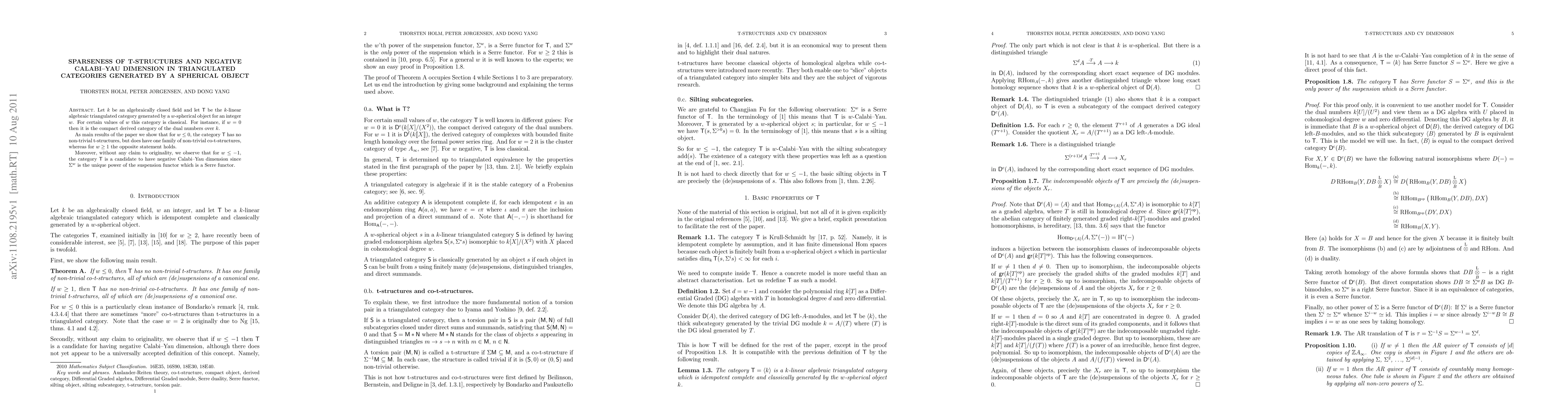 Research paper explores properties of triangulated categories generated by spherical objects, finding that certain categories have no non-trivial t-structures or negative Calabi-Yau dimension for specific values of the object's weight.