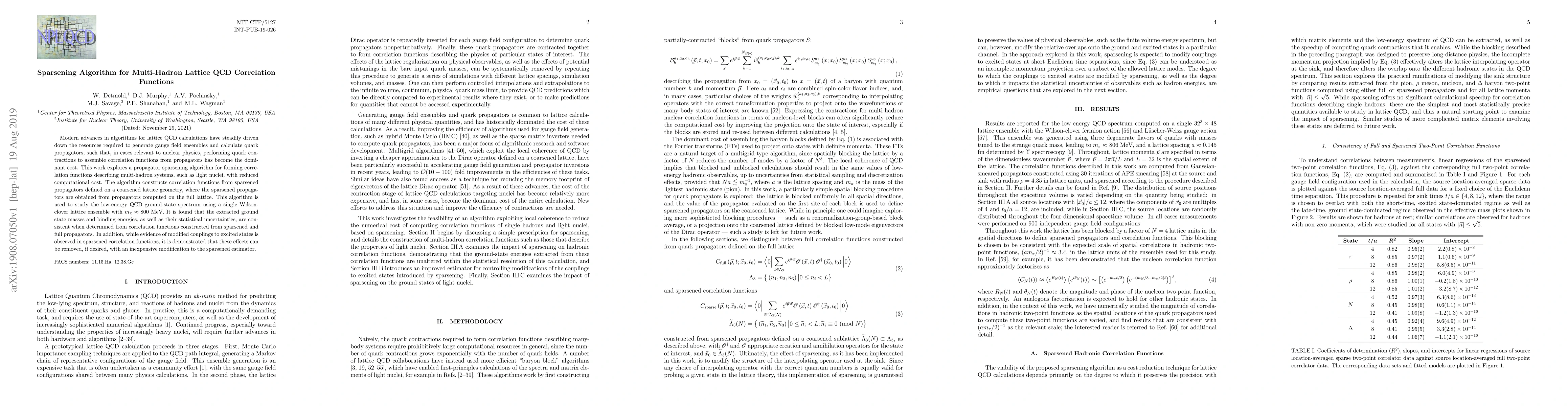 This paper introduces a sparsening algorithm to reduce computational costs in lattice QCD calculations for multi-hadron systems by constructing correlation functions from coarsened lattice propagators. The algorithm maintains consistency in extracted ground state masses and binding energies, though it notes minor modifications to couplings in excited states that can be corrected.