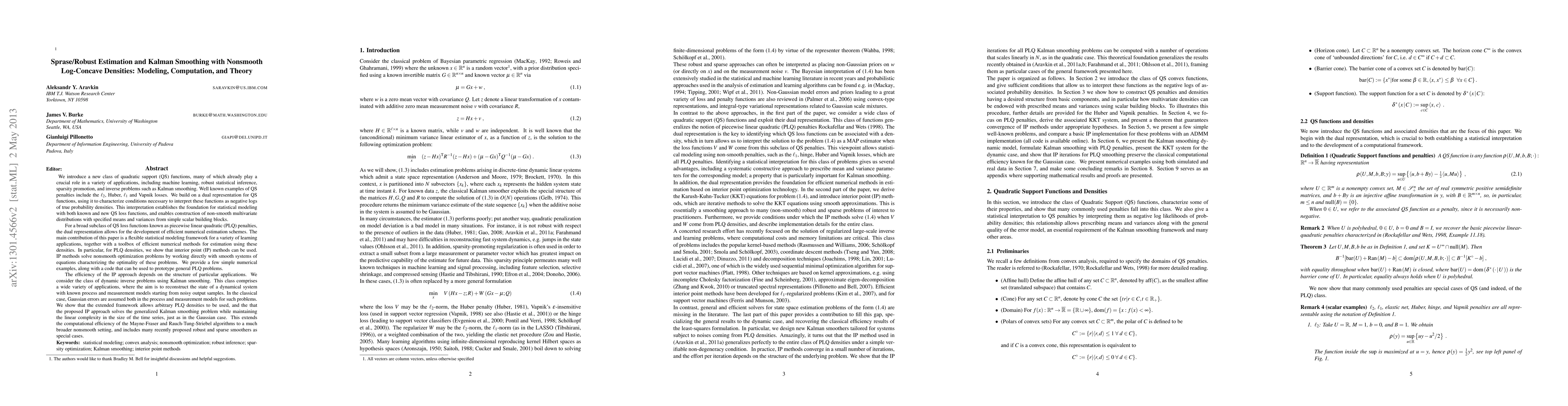 This paper introduces quadratic support functions, including l2, Huber, l1, and Vapnik losses, and uses convex analysis to provide a statistical interpretation of these functions. It develops efficient numerical estimation schemes for piecewise linear quadratic penalties, enabling flexible statistical modeling and robust inference, with interior point methods extending Kalman smoothing to nonsmooth log-concave densities.