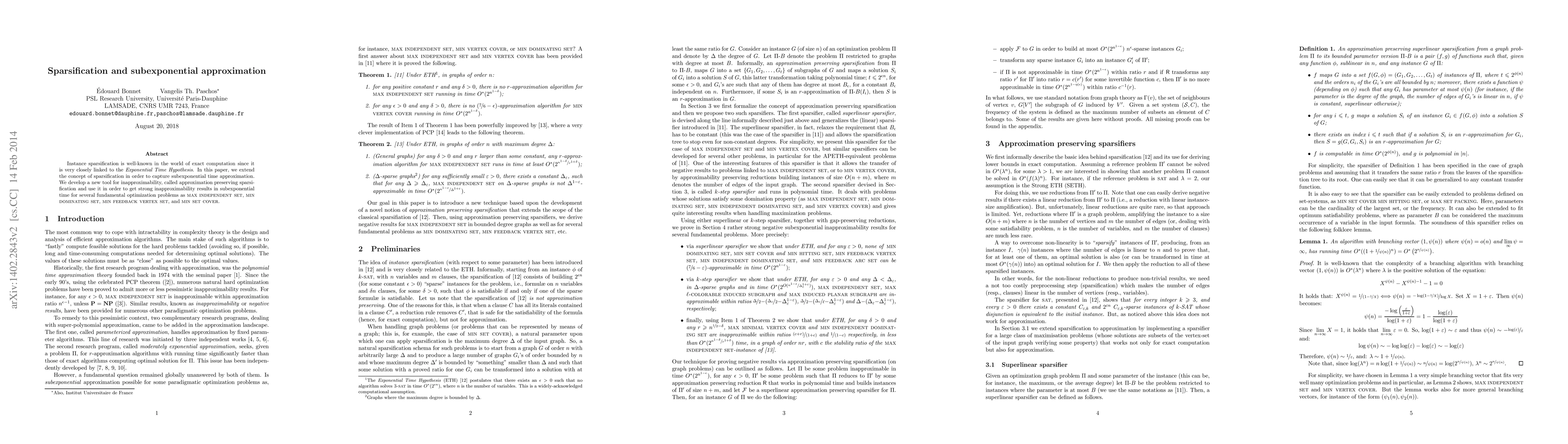 This paper introduces a novel concept of approximation preserving sparsification to achieve subexponential time approximation for fundamental optimization problems, demonstrating strong inapproximability results for Max Independent Set, Min Dominating Set, Min Feedback Vertex Set, and Min Set Cover.