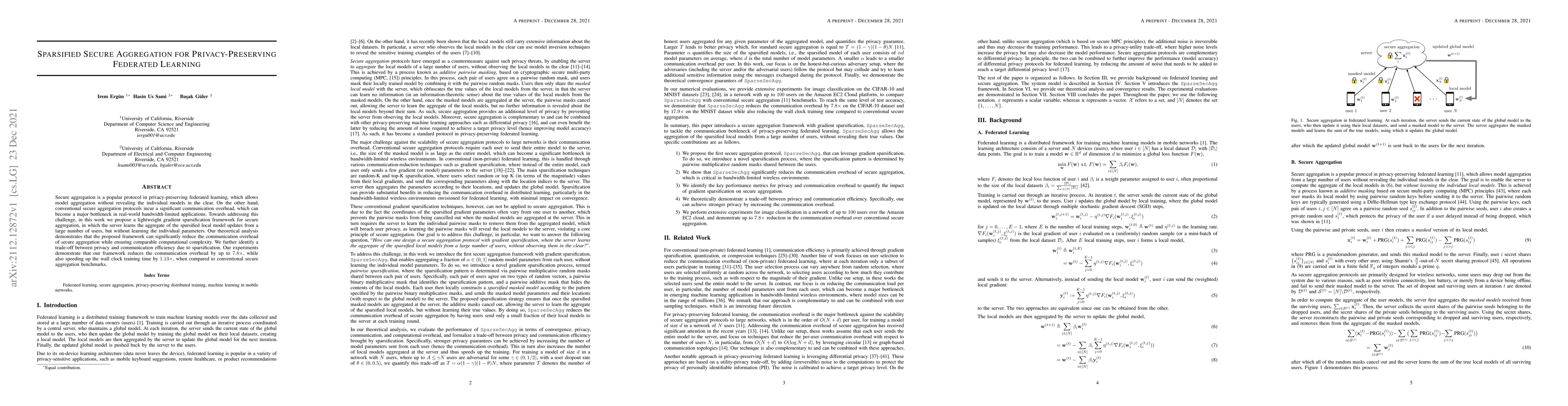 This paper proposes a lightweight gradient sparsification framework for secure aggregation in federated learning to reduce communication overhead without compromising privacy. The framework significantly decreases bandwidth usage while maintaining computational efficiency, achieving up to 7.8x reduction in communication and a 1.13x speedup in training time.