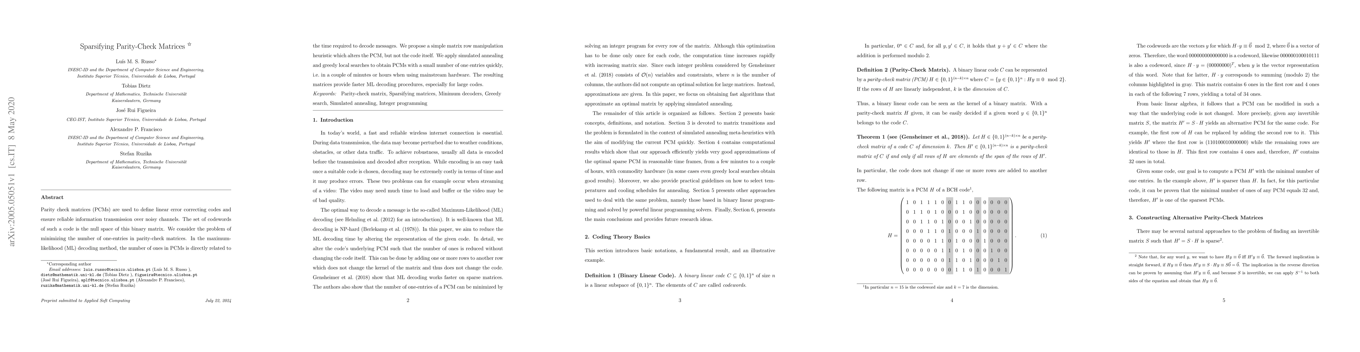This paper proposes a heuristic to minimize the number of ones in parity-check matrices (PCMs), aiming to speed up maximum-likelihood decoding. Using simulated annealing and greedy local searches, it generates PCMs with fewer one-entries, facilitating faster decoding for large error-correcting codes.